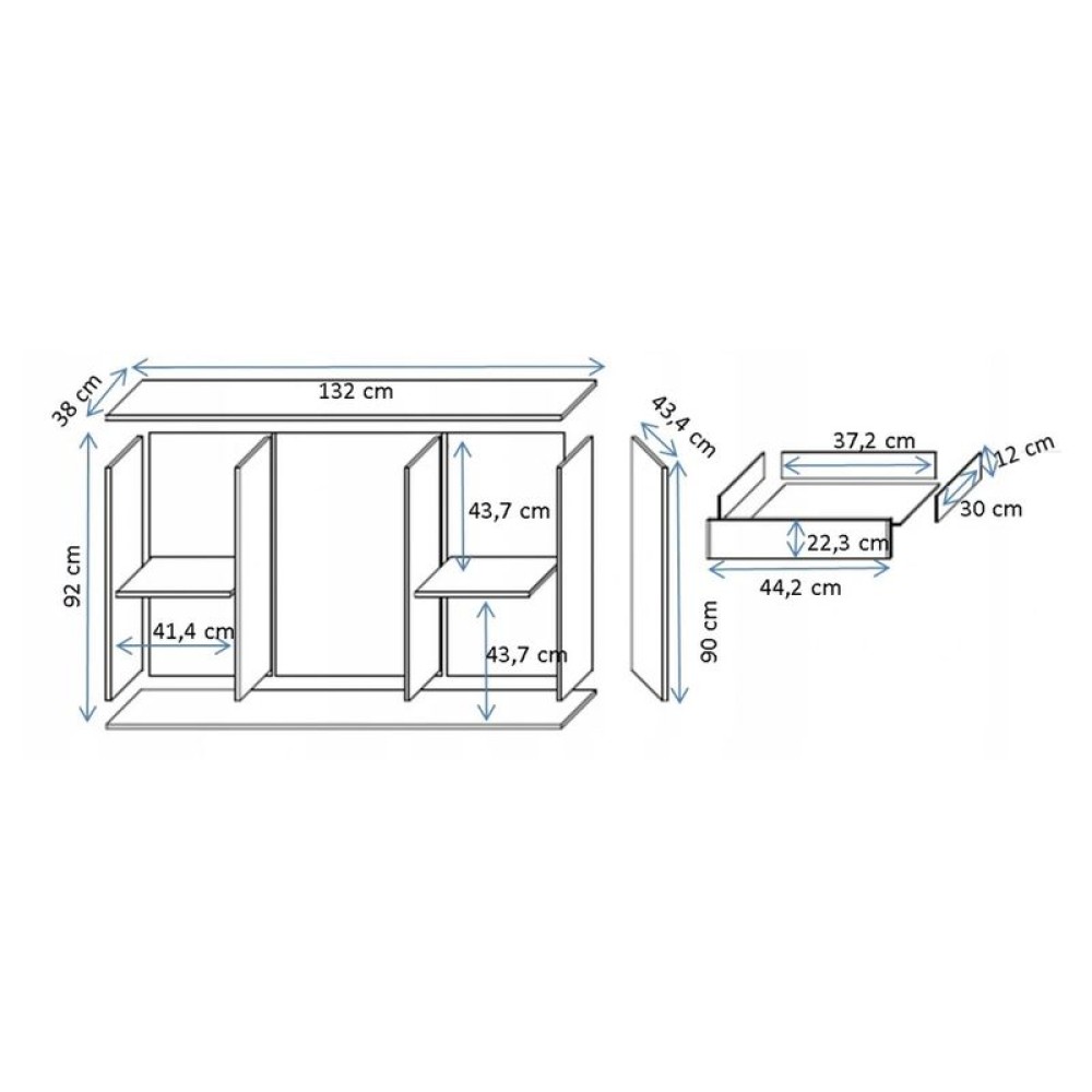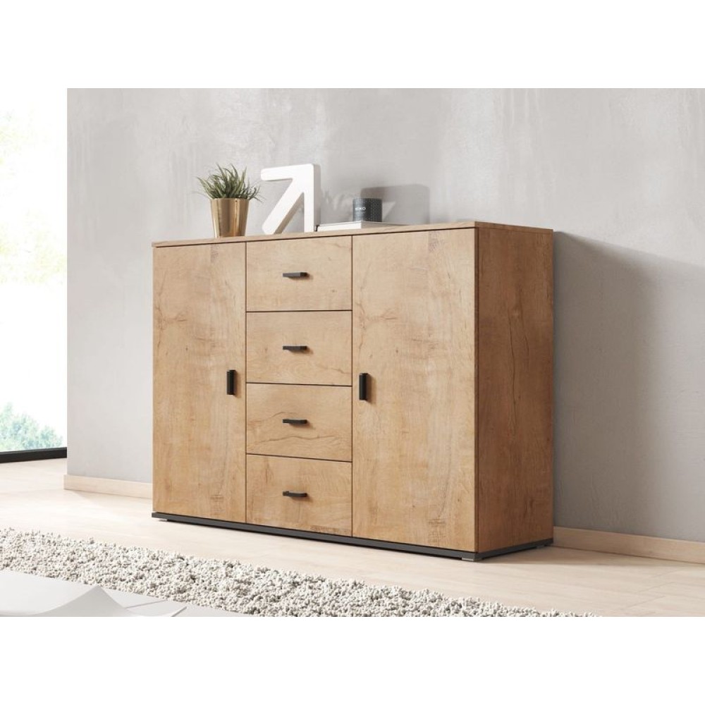 Комод оборудован четырьмя выдвижными ящиками, а за двумя дверками расположено по одной полке. Четкая инструкция позволит без сложностей собрать изделие.
