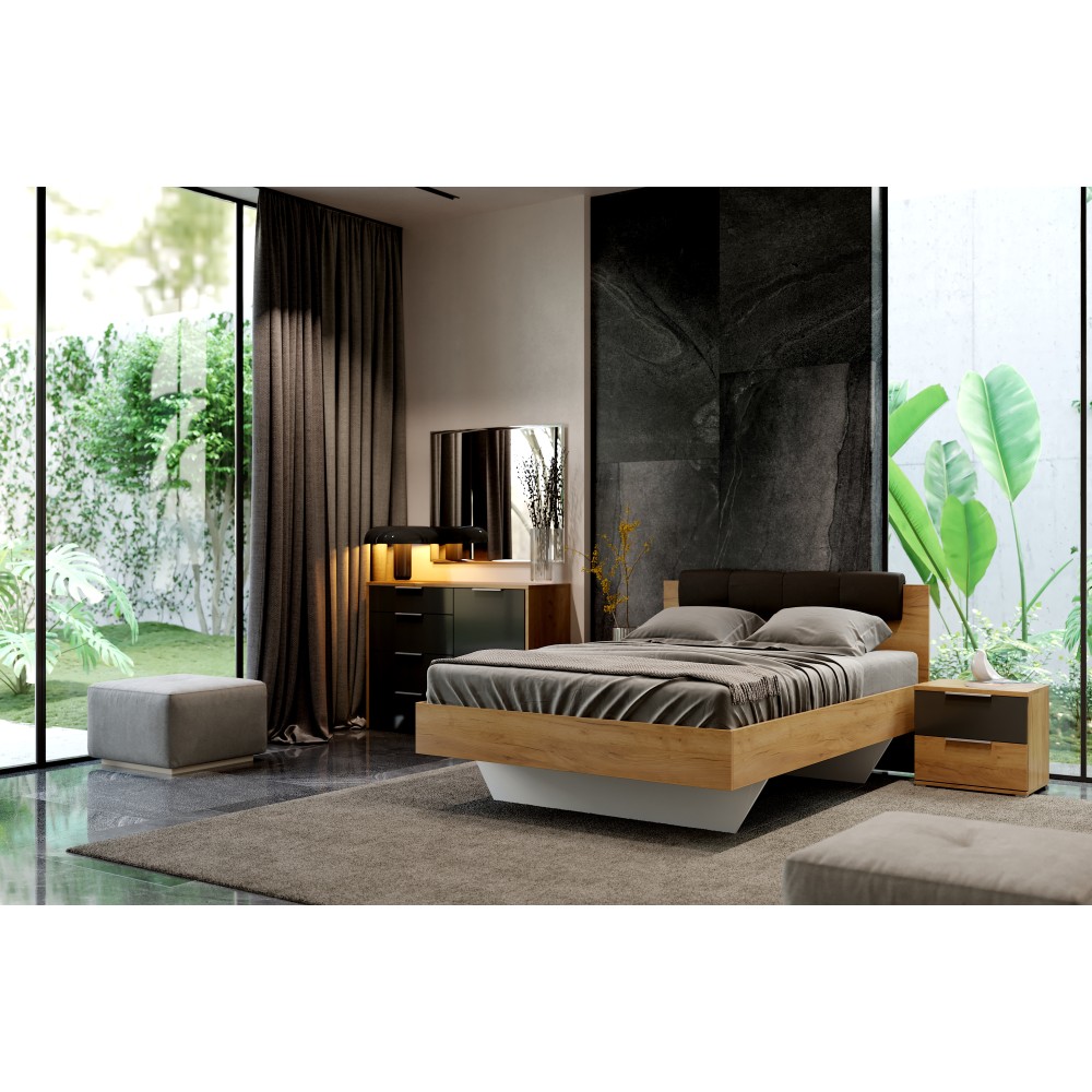 Комод 1 дверь 4 ящика Luna - компактное, функциональное и достаточно вместительное изделие. Комод оборудован четырьмя выдвижными ящиками, а за дверцей находятся еще две полки. В таком комоде вы сможете хранить одежду, белье и других различные вещи. Матовые темные фасады вместе с корпусом в цвете светлое дерево делают данный комод идеальным вариантом для создания стильного интерьера в современном или любом другом стиле.