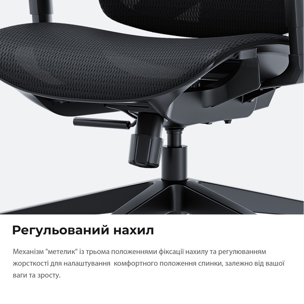Кресло учитывает все потребности вашего тела. Интегрированная С-образная поясничная поддержка динамично адаптируется к вашему положению, предоставляя максимальную опору, независимо от того, работаете ли вы или отдыхаете.