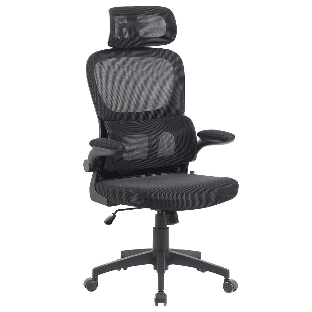 Откидные подлокотники позволяют быстро освободить пространство вокруг кресла — идеально для небольших комнат или когда нужно полностью заехать под стол. При необходимости они обеспечивают комфортную опору для рук во время работы.
