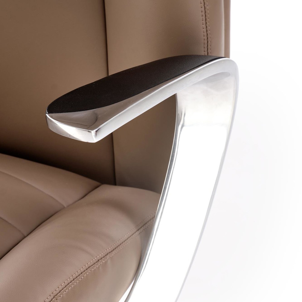 Офисное кресло Darwin выполнено из премиальной экокожи в оттенке капучино – она приятна на ощупь, устойчива к износу и проста в уходе. Алюминиевое основание и подлокотники придают конструкции надежность, устойчивость и стильный современный вид. Такое сочетание материалов делает кресло не только комфортным, но и долговечным выбором для рабочего пространства.