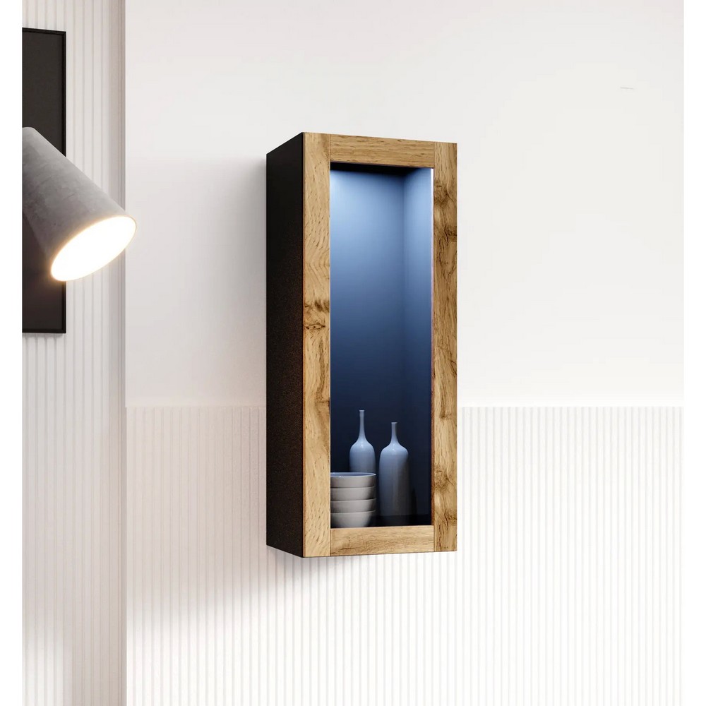 Пенал навесной Vigo 90 (стекло) черный / дуб вотан - 739635