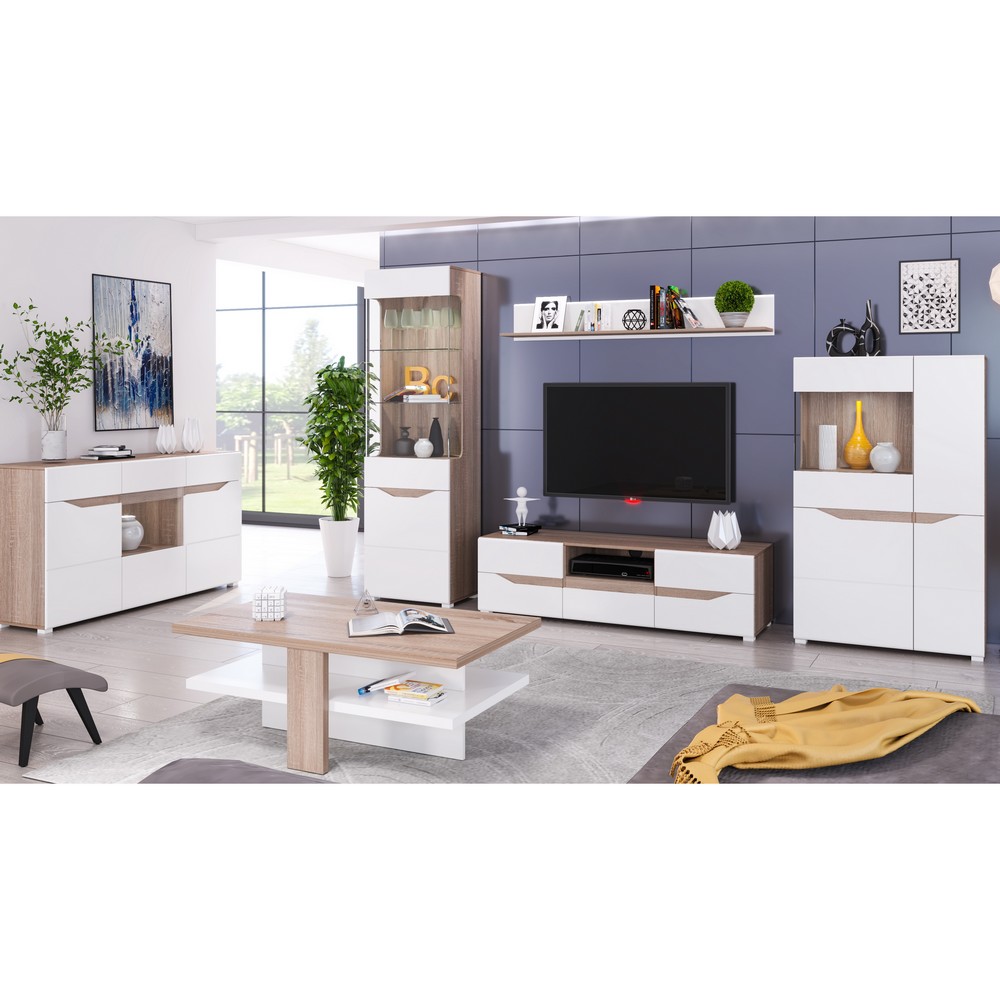 Стильный пенал-витрина Paris I станет замечательным предметом для украшения любой современной гостиной, создается только из долговечных компонентов. Корпус создается из ДСП цвета дуб сонома трюфель, в качестве материала для фасада выбран МДФ цвета белый глянец. Модель оснащена двумя распашными дверьми, одни из которых украшены прозрачным стеклом. Стоит отметить, что за дополнительную плату витрина может комплектоваться подсветкой.