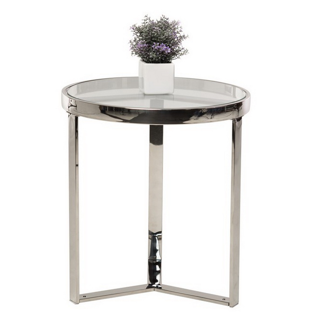 Небольшой кофейный столик CB-2 позволит с комфортом принимать гостей в домашней гостиной, создается только из качественных компонентов. Для создания каркаса производитель использует прочная хромированная сталь. Круглая столешница выполнена из прозрачного каленного стекла, ее диаметр составляет 50 см.
