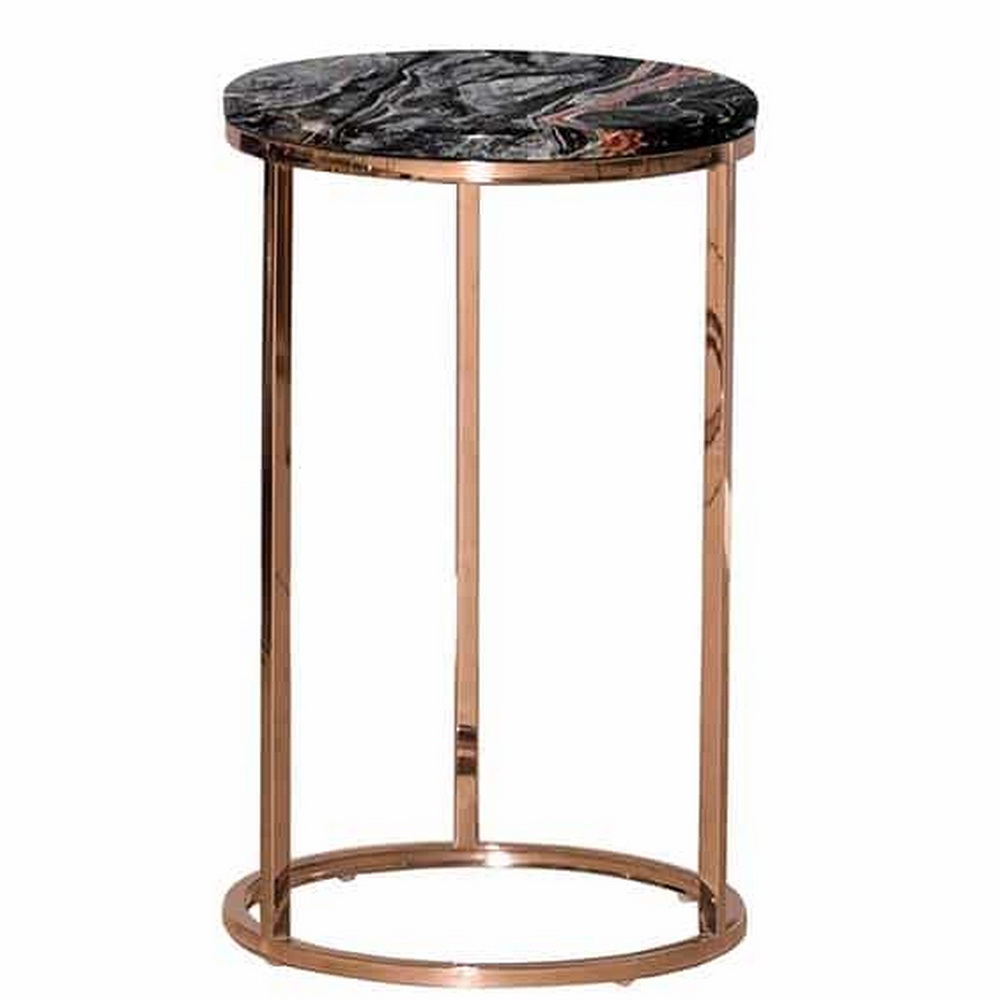 Стильный кофейный столик Glory диаметром 35 и высотой 57 см, и высотой позволит украсить интерьер любой современной гостиной, может также устанавливаться и в холлах гостиниц или крупных предприятий. Каркас создается из прочного металла золотого оттенка, столешница выполнена из черного мрамора, который обтянут защитной пленкой. Модель доступна в нескольких вариантах размеров.