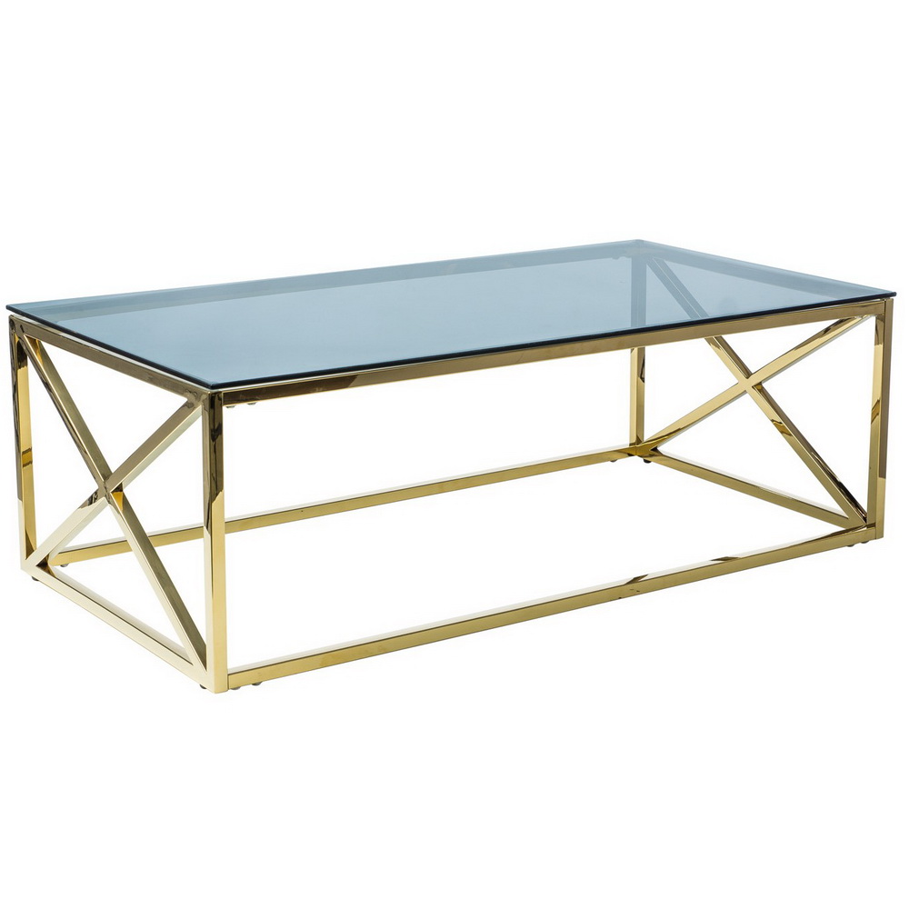 Роскошный журнальный столик Elise A идеально подходит для большой гостиной или зала ожидания большого предприятия. Каркас стола создан из хромированного метала золотого цвета, для дополнительной прочности ножки скреплены по диагонали. Вместительная столешница изготовлена из закалённого стекла, которое легко поддается очистке.