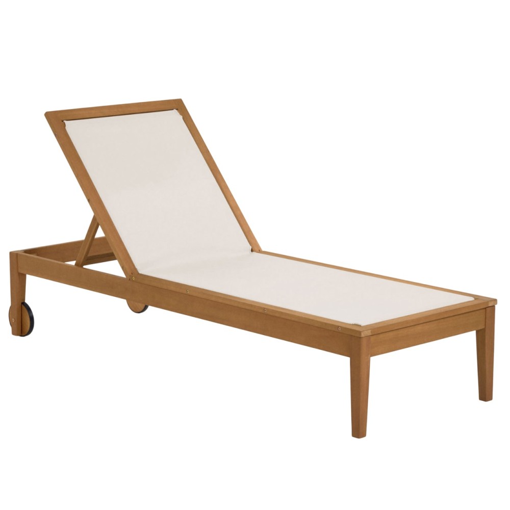 Регулируемая спинка предлагает 4 положения для максимального комфорта, а прочная ткань устойчива к ультрафиолету и рассчитана на длительное использование под открытым небом. Колеса облегчают перемещение шезлонга и дополнены защитой от повреждений напольного покрытия.