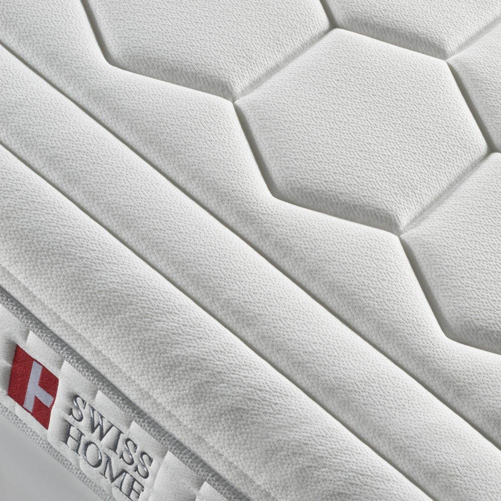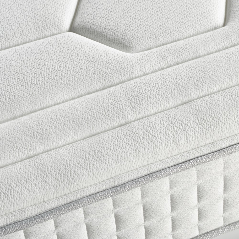 - 7-зонная система пружин Pocket Spring — сердце матраса. Каждая пружина работает отдельно, обеспечивая индивидуальную поддержку для разных частей тела: головы, плеч, спины, таза и ног.