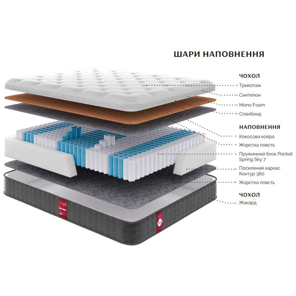 Акцентируем Ваше внимание на том, что цена кровати Вас приятно порадует и удивит. В каталоге Вы можете выбрать и купить уличный стол, цена доступна каждому, а такой товар, как тумба в комнату у нас есть возможность доставить в Ровно, Кропивницкий, Ирпень и по другим городам Украины.матрас, ортопедический матрас, Victory V2, Pocket Spring Sky 7, пружинный блок, семь зон жесткости, кокосовая койра, Mono Foam, спанбонд, жесткий войлок, чехол трикотаж, чехол жаккард, высота 25 см, средняя жесткость, каркас Контур 360, нагрузка до 120 кг, матрас для сна, матрас для кровати, матрас с усиленной поддержкой, матрас с натуральными компонентами, матрас с вентиляцией, украинское производство, ортопедическая поддержка, износостойкий, матрас с длительным сроком службы, матрас для комфортного сна, матрас средней жесткости, размеры 120х200, 140х200, 160х200, 180х200, 90х200, 80х190, 90х190, 80х200, 120х190, 140х190, 160х190, 180х190