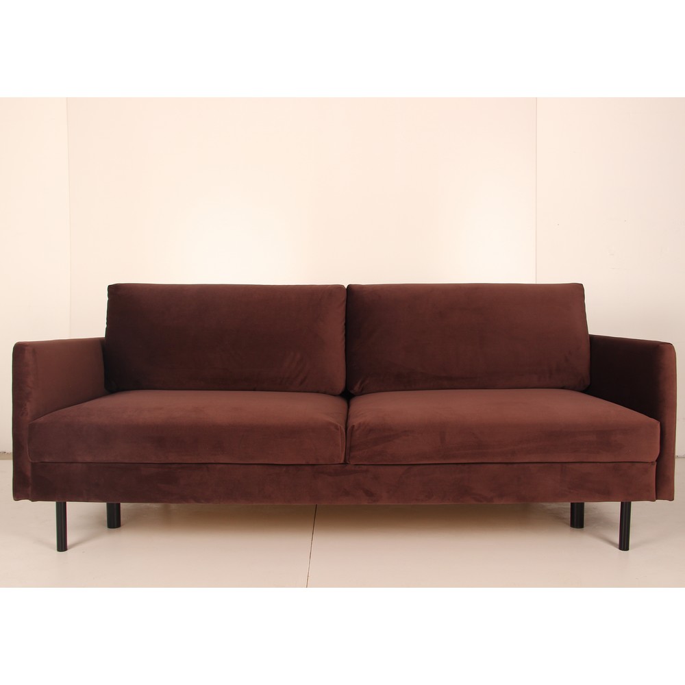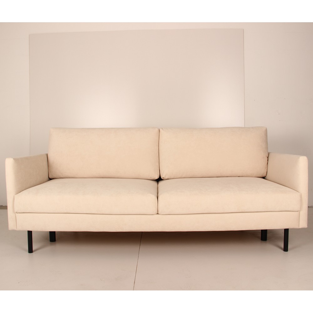 Прочный каркас дивана создается из соснового бруса, ДСП и фанеры, ножки выполнены из окрашенного металла.
