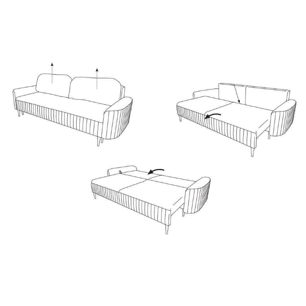 Диван раскладной Vena — это элегантное и стильное решение, которое станет украшением любого современного интерьера. Утонченный дизайн с декоративными стежками и изящными линиями добавляет изысканности, а высокая функциональность делает его идеальным выбором для уютной гостиной.