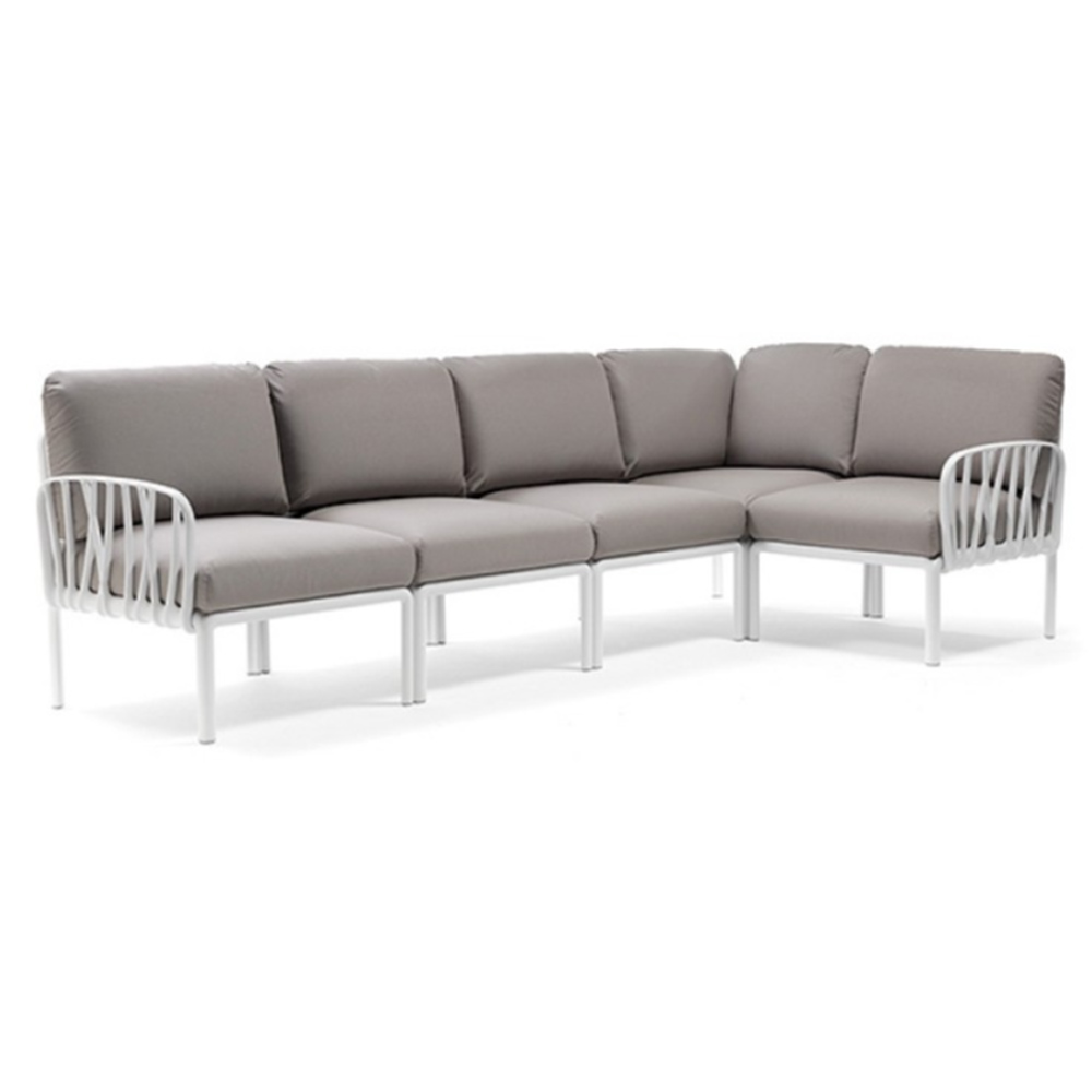 Комфортный и большой модульный диван Komodo 5 позволит украсить интерьер любого современного помещения или придомовой территории, может использоваться как в домашних условиях, так и в общественных местах. Прочный каркас выполнен из особого вида пластика - полипропилена, который отличается особой устойчивостью к температурным перепадам и ультрафиолетового излучения, что позволяет размещать его даже на улице. Обивка мягких подушек осуществляется с помощью износоустойчивой ткани, доступно несколько цветовых оттенков на выбор покупателя.