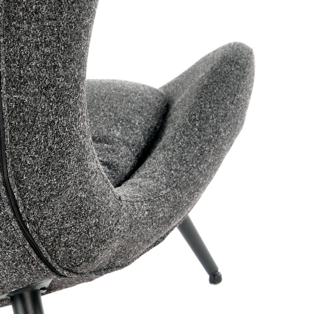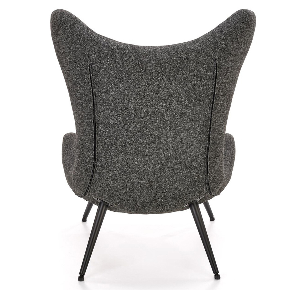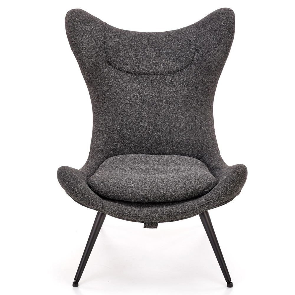 Кресло установлено на стальных ножках с черным порошковым покрытием, что придает ему устойчивость и современный вид.