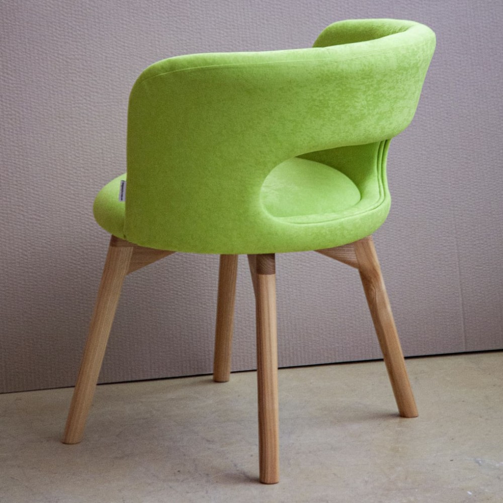 Каркас кресла выполнен из массива дерева и фанеры. Ножки изготовлены из ясеня и имеют выбор цвета. Среди широкой цветовой гаммы тканей вы сможете подобрать идеальный вариант обивки на свой вкус.