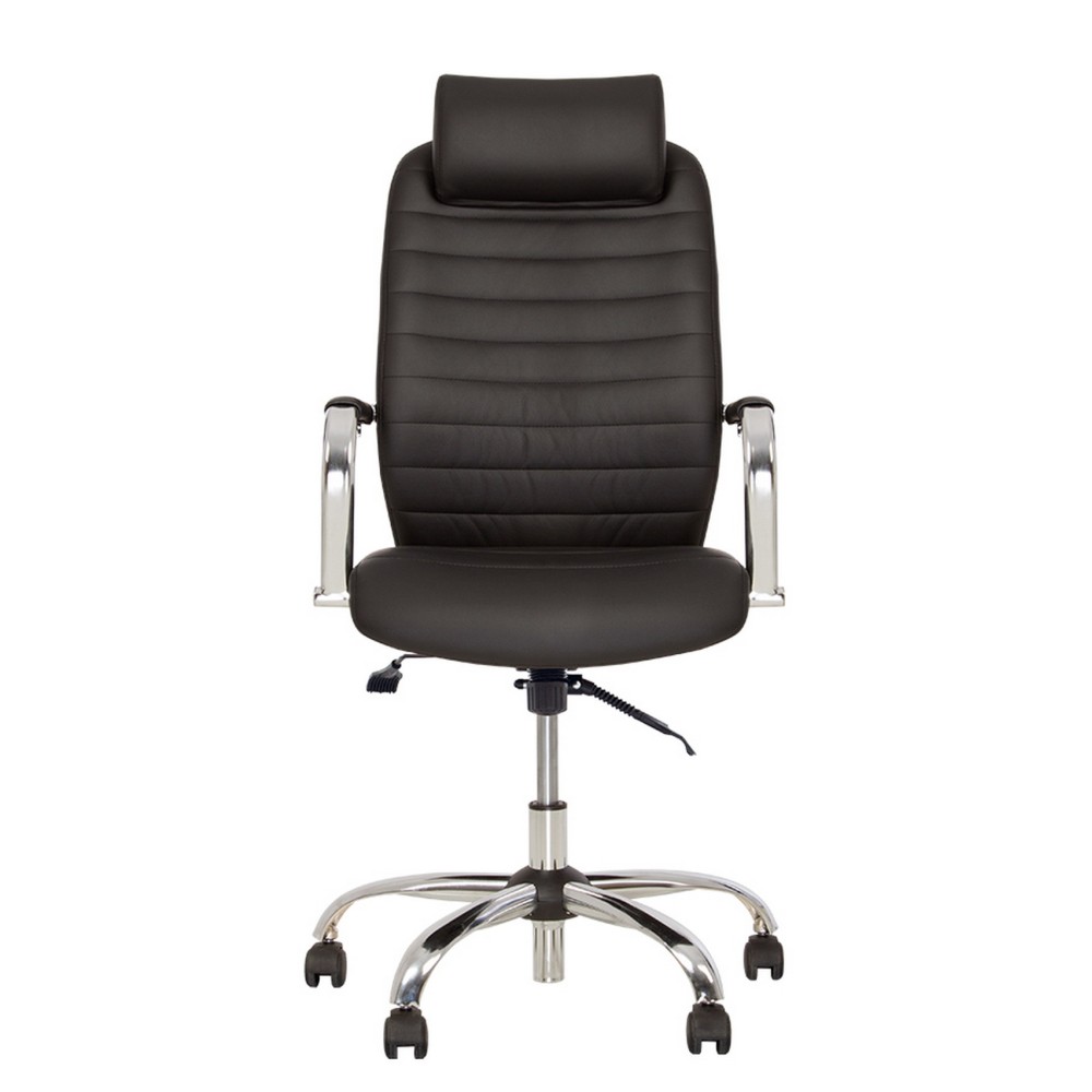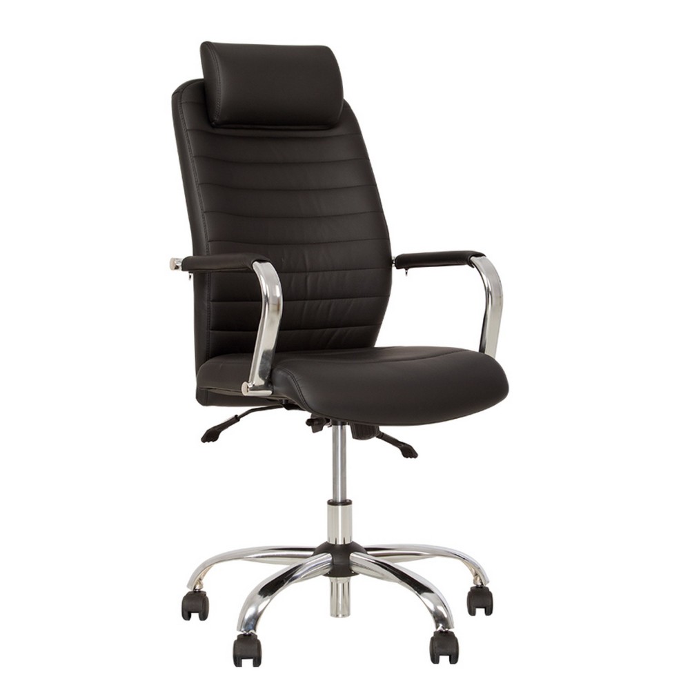 - крестовина и подлокотники кресла изготавливаются из хромированного металла, при этом поверх последних крепится стильные мягкие накладки