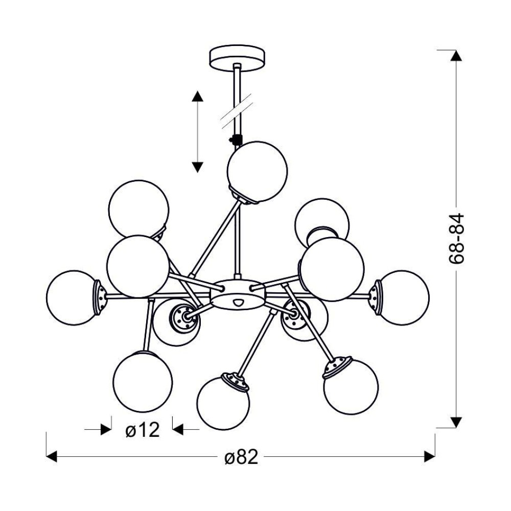 - Модель оснащена 12 цоколями E14, что гарантирует мощное, но приятно рассеянное освещение.