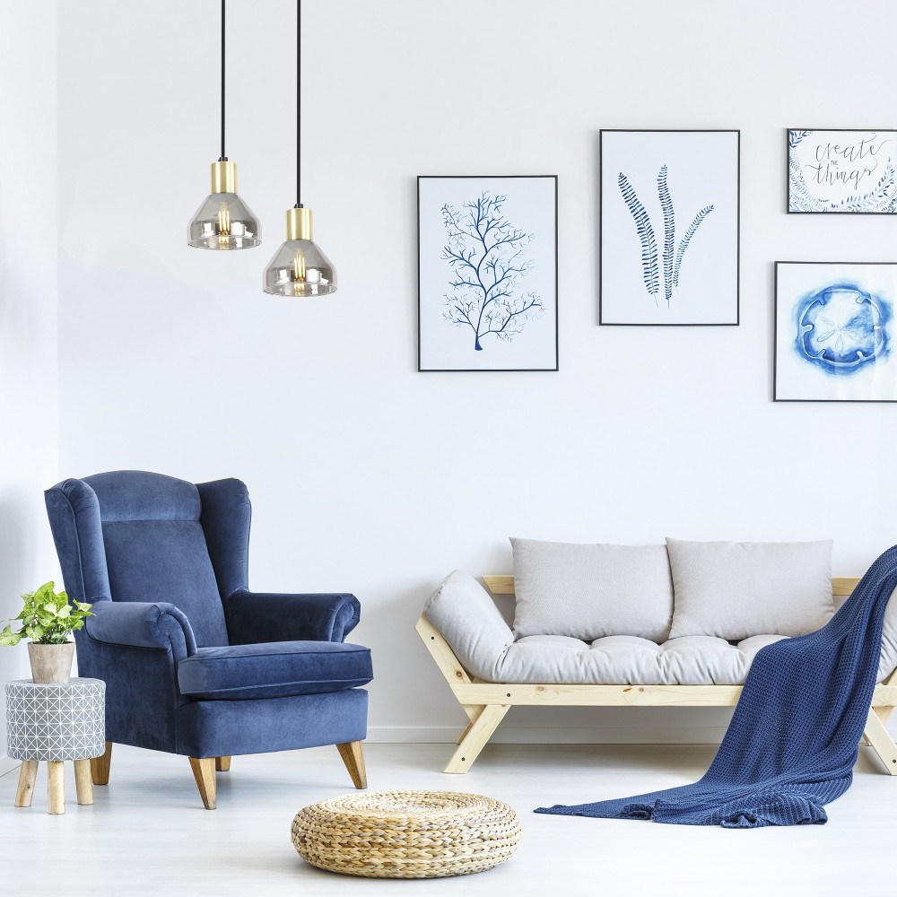 - Стеклянный абажур дымчато-серого оттенка мягко рассеивает свет, создавая приятную и уютную атмосферу — идеально для гостиной, кухни или ресторанного зала.