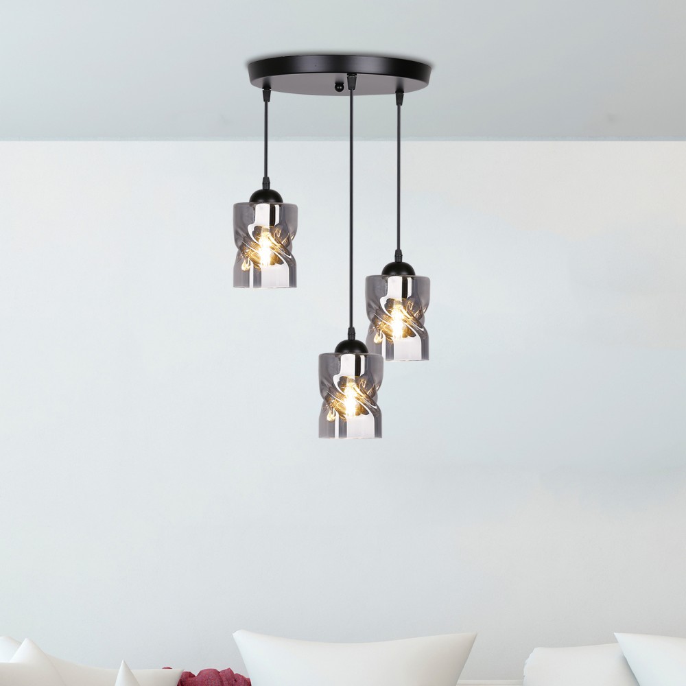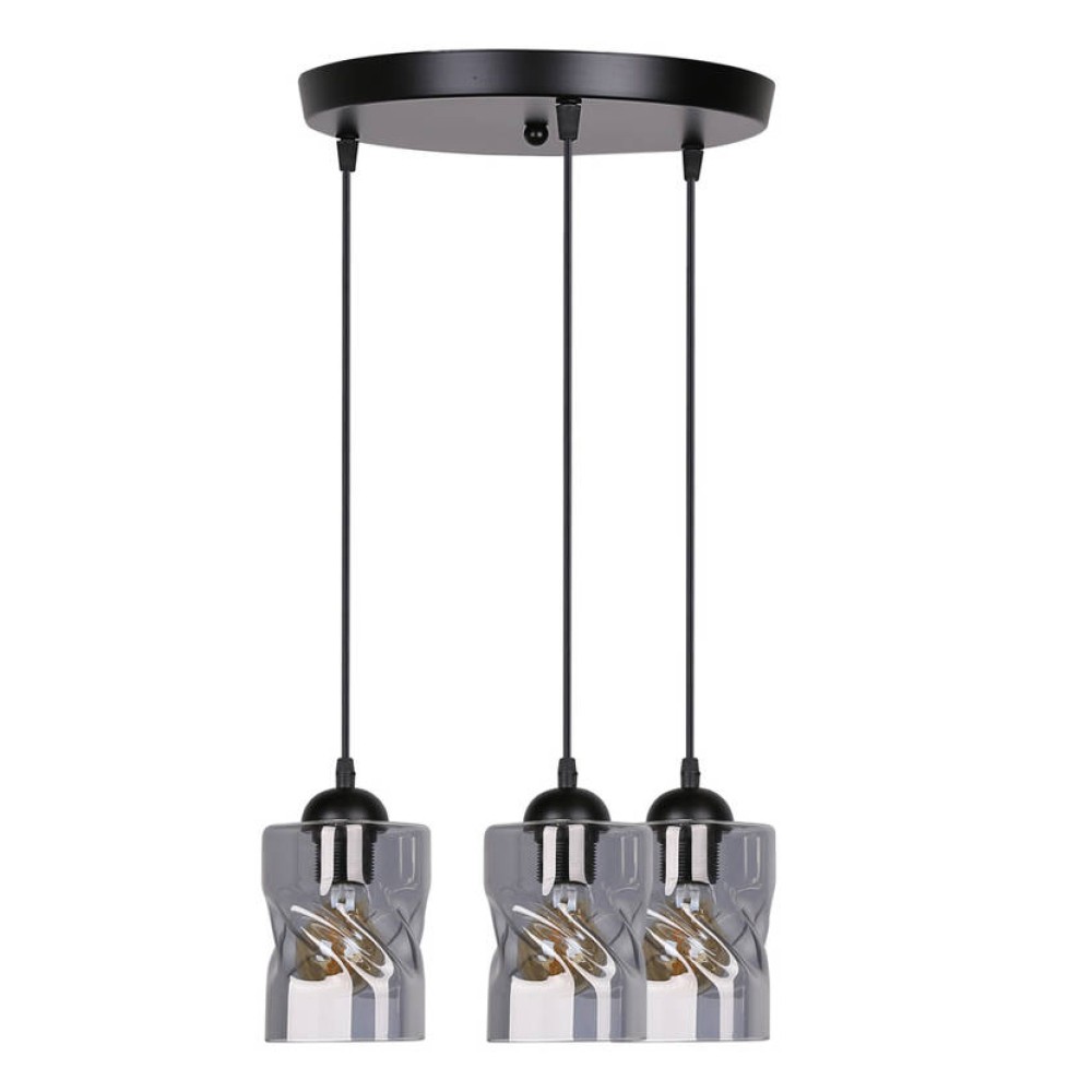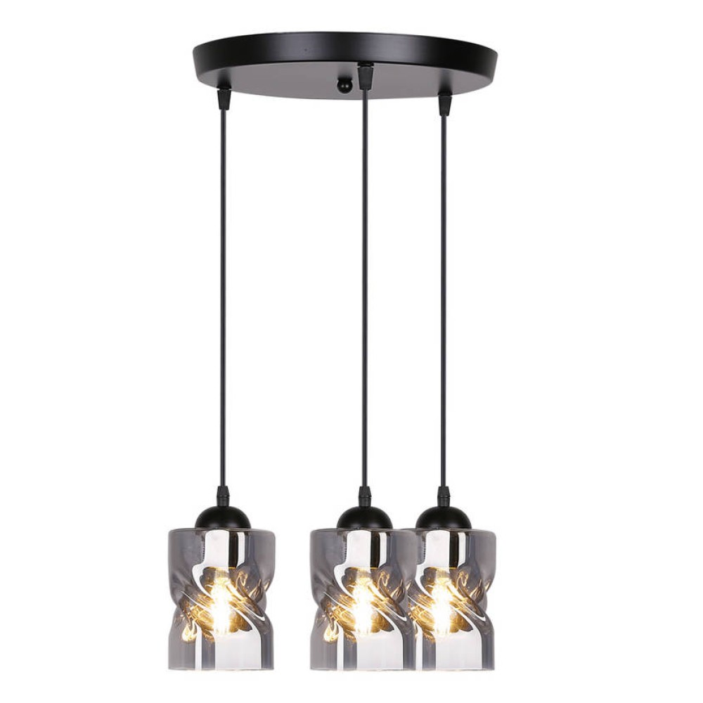 - Элегантный дизайн: три абажура из дымчатого стекла и черная металлическая основа создают современный и стильный вид.