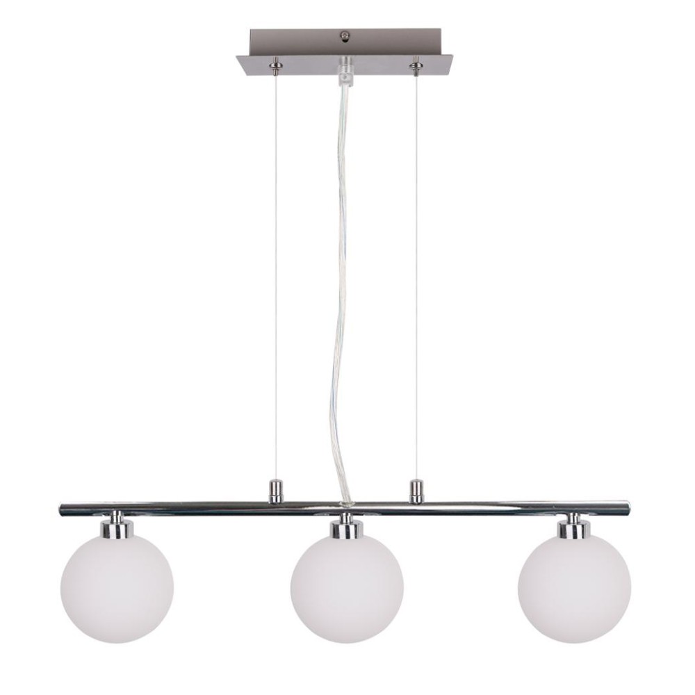- Светильник оснащен держателями из хромированного металла и белыми стеклянными абажурами, которые создают мягкое, деликатное освещение.