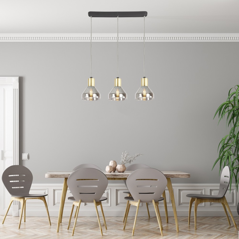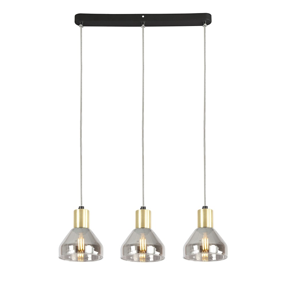 - В этой модели сочетаются стеклянные плафоны дымчатого цвета с металлической основой золотисто-черного оттенка, что создает стильный контраст и добавляет ощущение роскоши.