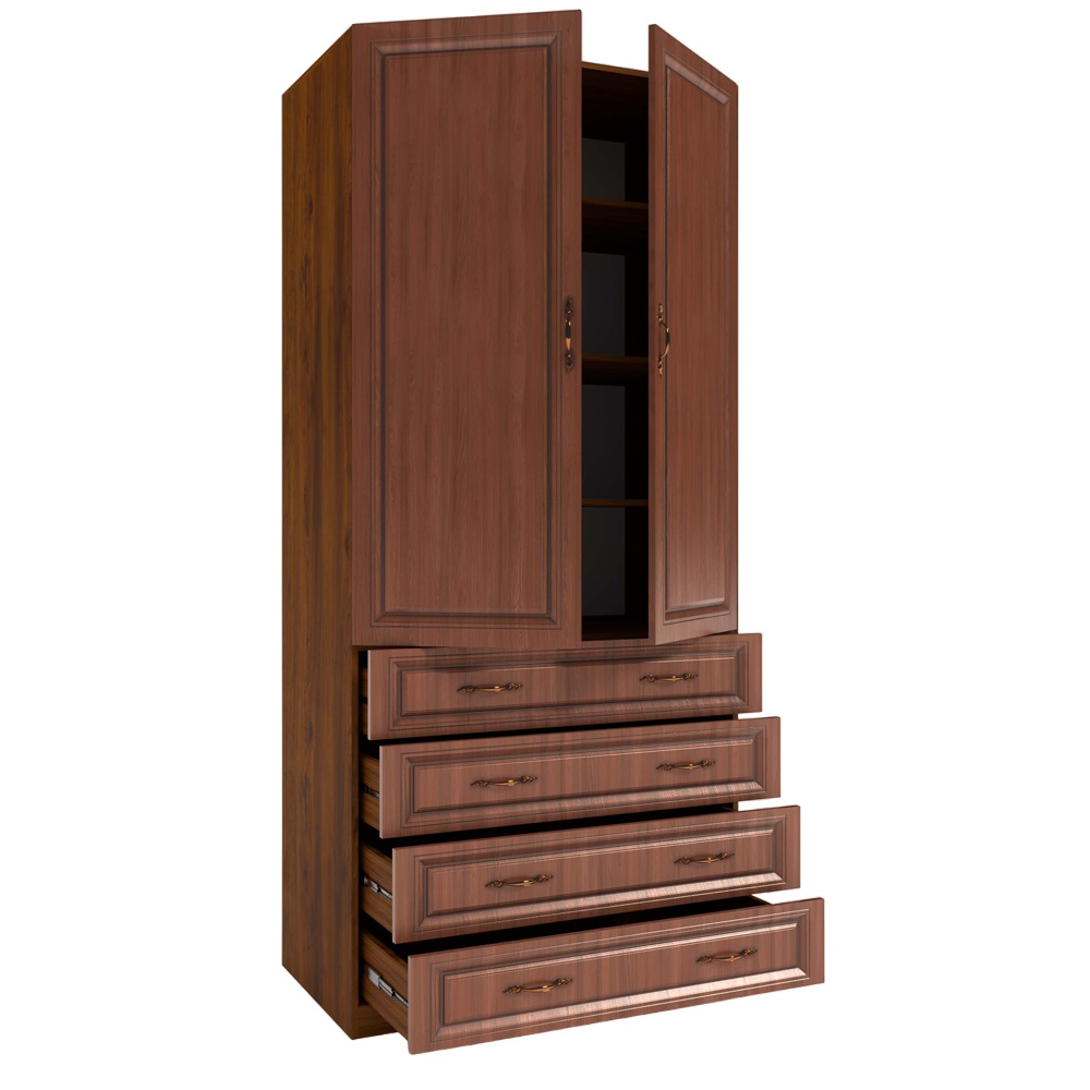 Шкаф 2Д + 4Я Софи - элегантное изделие, созданное для обустройства уютного и функционального помещения. Такой шкаф станет гармоничным дополнением интерьера спальни, гостиной или прихожей. Благодаря продуманному наполнению шкафа, у вас будет достаточно места для бережного хранения всего вашего гардероба, аксессуаров и других вещей. Внизу шкафа находятся четыре вместительных выдвижных ящика, а за распашными дверьми скрыто три полки.