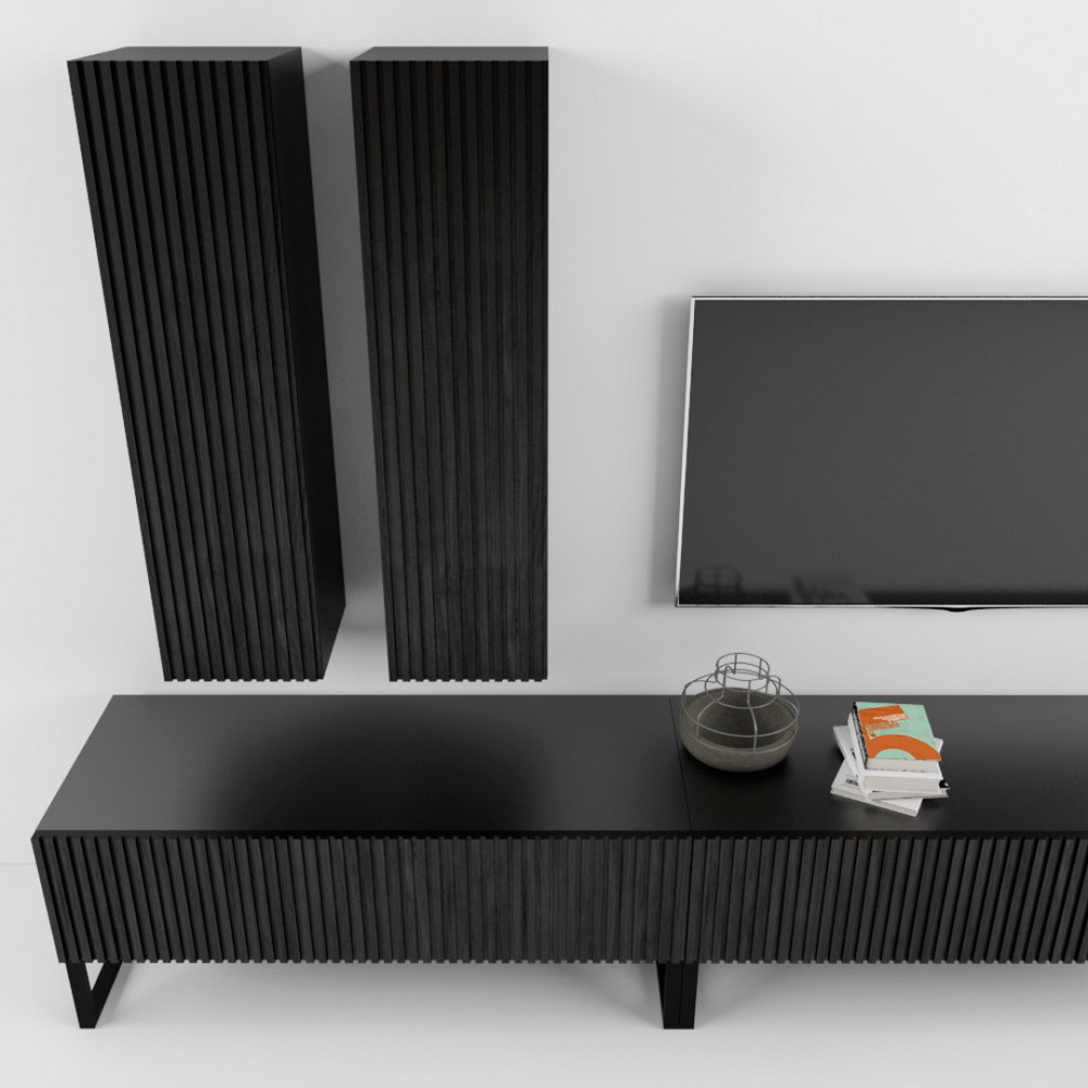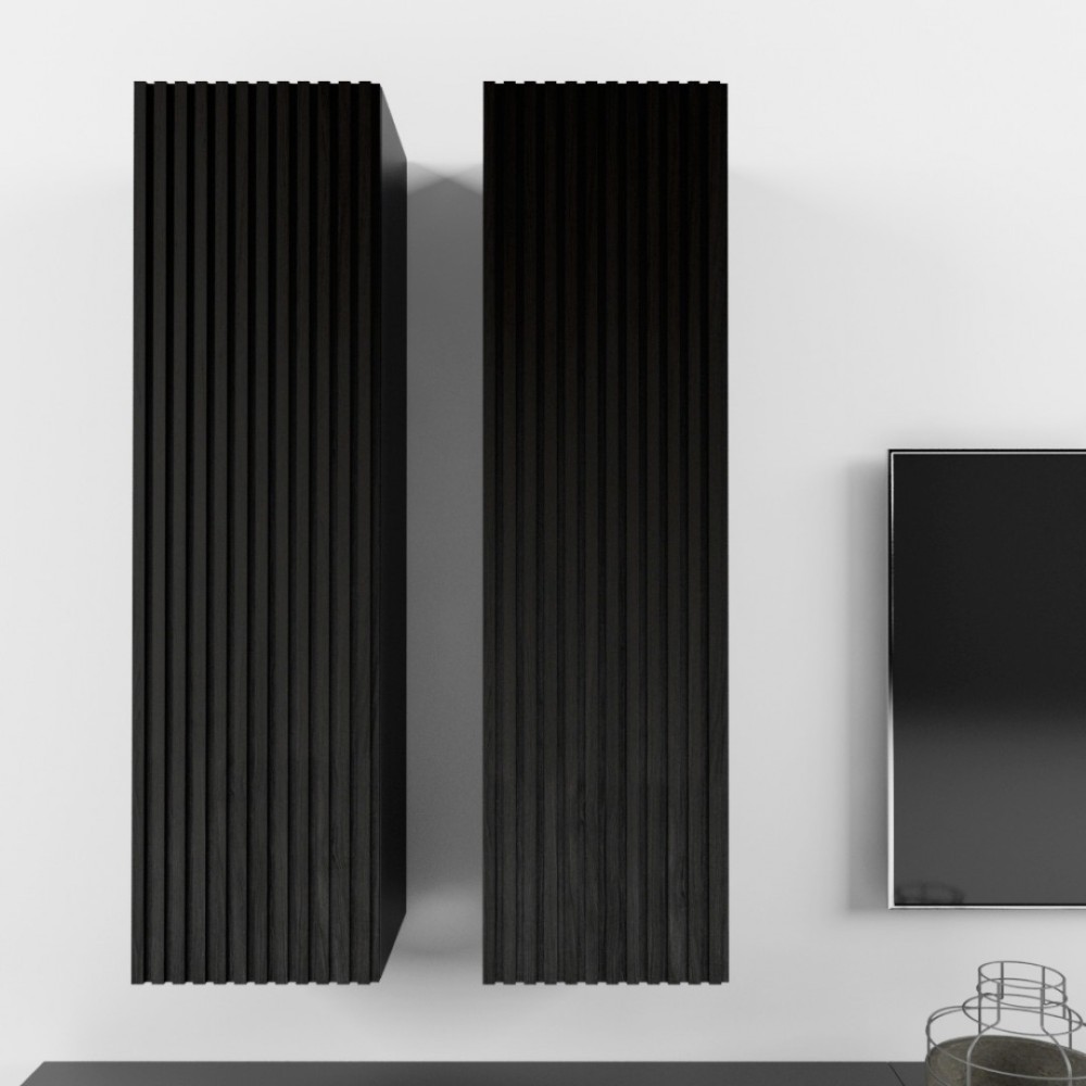 Подвесной шкаф ARRIS BLACK является идеальным украшением стильного и современного кабинета руководителя или комфортной домашней гостиной. Корпус шкафа создан с прочного черного МДФ, для фасада выбрано натуральное тонированное дерево.
