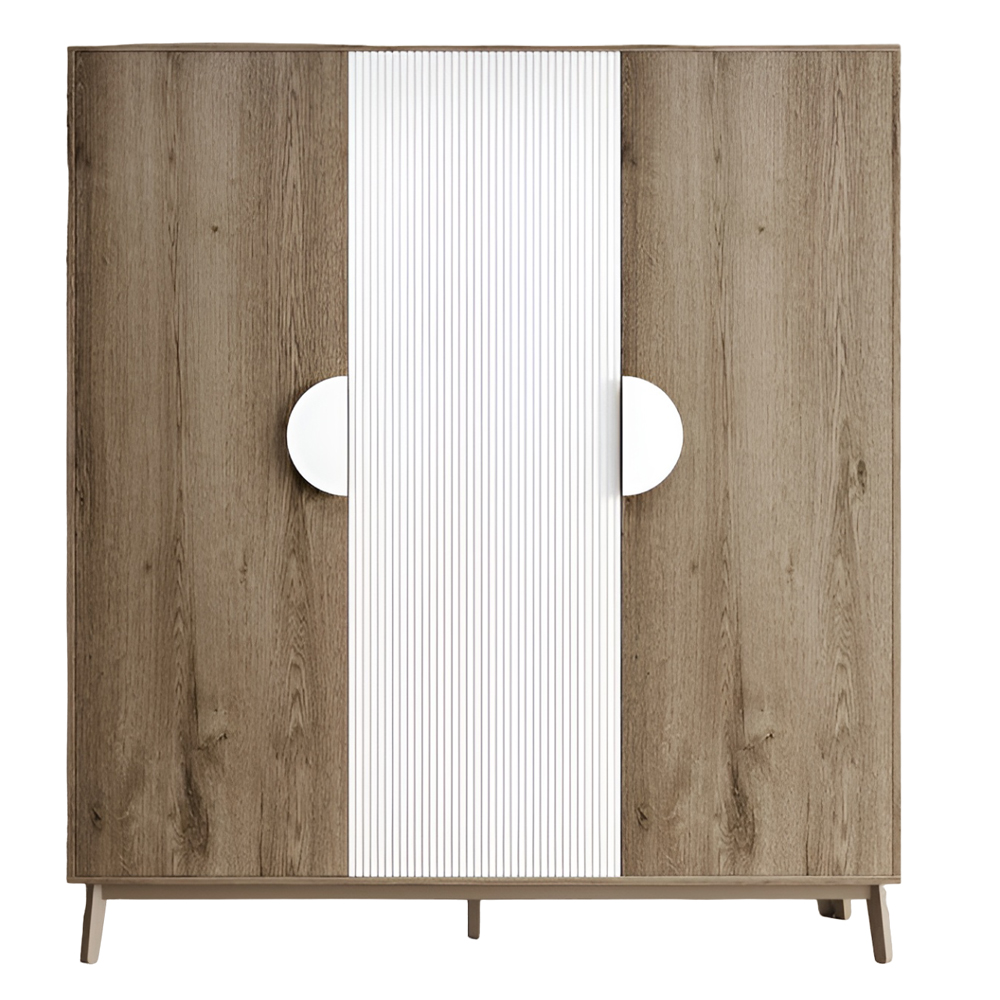 Фасад шкафа с гофрированным узором выполнен из красивого МДФ, а ножки - из натурального дерева. Ножки обеспечивают удобный доступ для уборки под шкафом без лишних хлопот. Двери шкафа обладают бесшумной системой открытия.