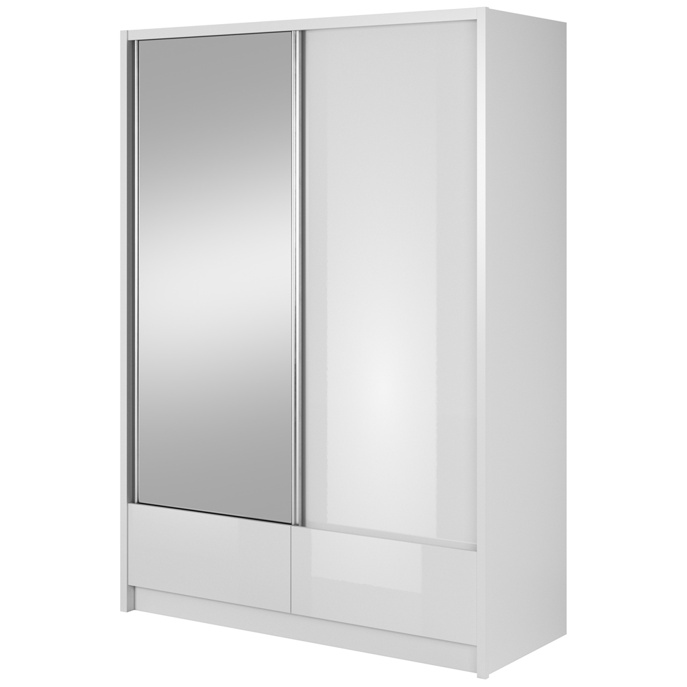 Шкаф-купе с зеркалом и ящиками Aria I 150 белый / белый глянец - 898484