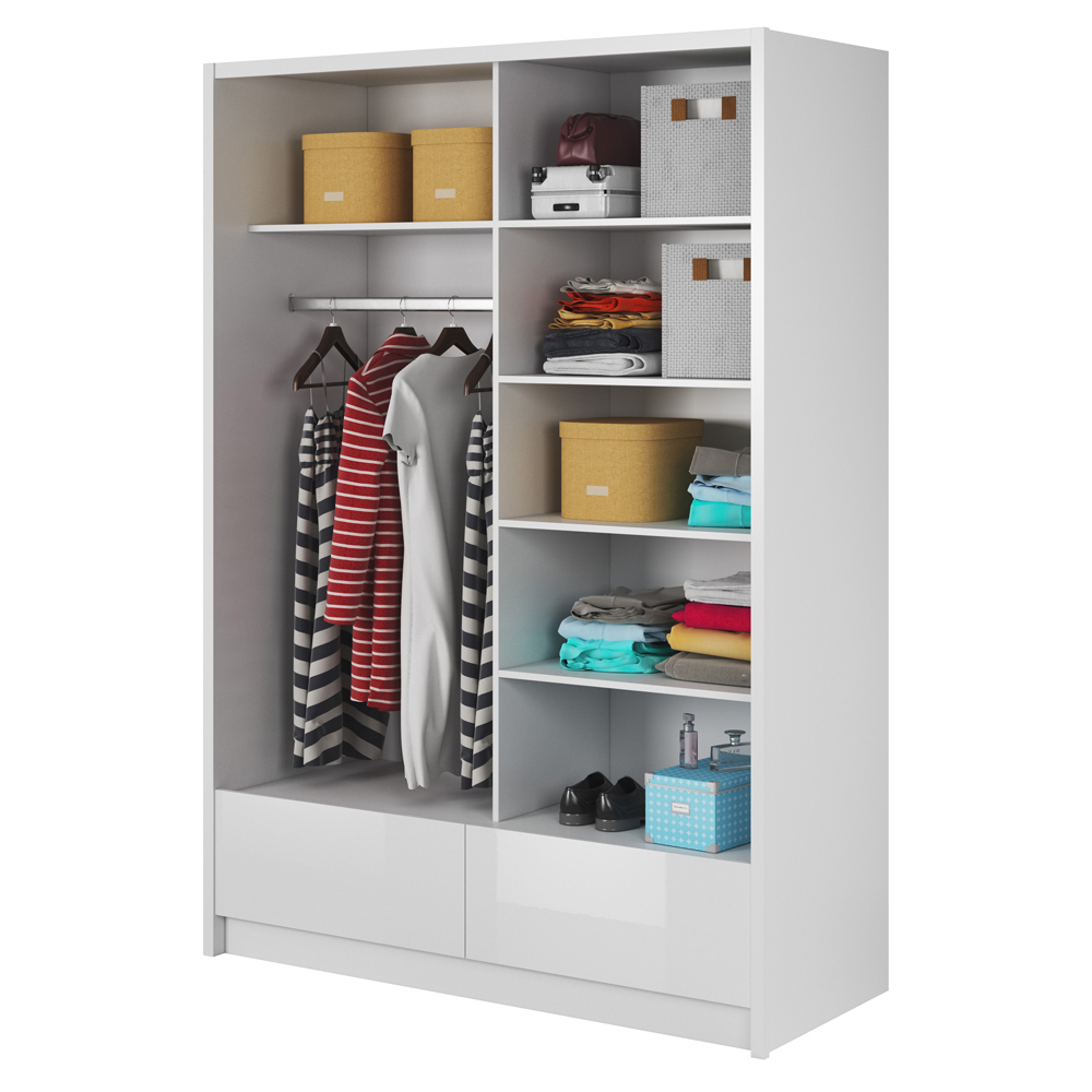 Шкаф-купе с зеркалом и ящиками Aria I 150 – это не просто функциональное решение для хранения, но и настоящий акцент стиля в вашем интерьере. Благодаря своему изысканному глянцевому покрытию, этот шкаф привнесет ноту элегантности и свежести в любую комнату, делая ее еще более привлекательной.