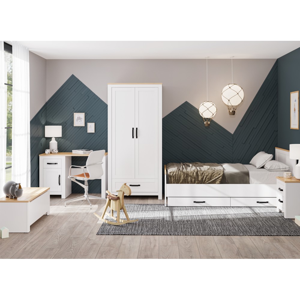 Шкаф Lanzette dF - идеальная находка для размещения практически всего гардероба. Такое изделие безупречно впишется в интерьер детской, спальни или прихожей. За двумя распашными дверьми пространство условно разделено на две части: справа находятся две штанги для вешалок, а слева - полки для хранения. Выдвижной ящик пригодится для аксессуаров и других мелких предметов.