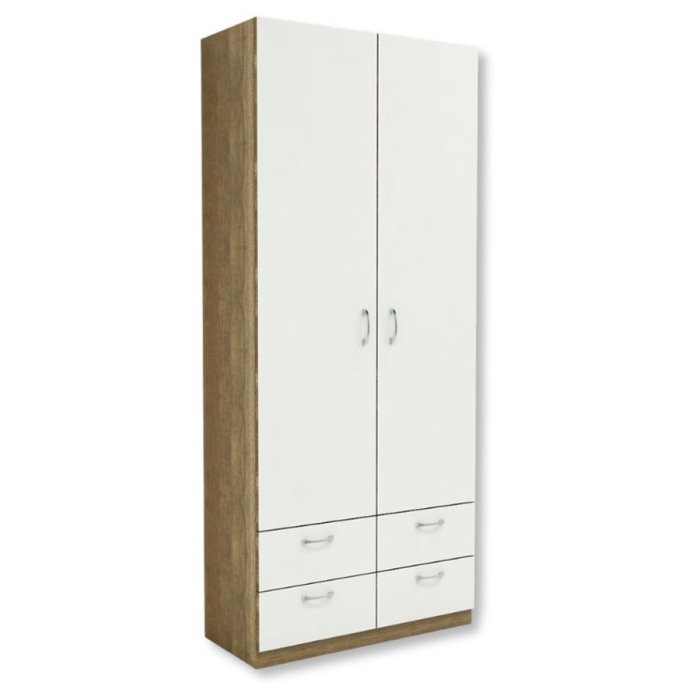 За распашными дверцами находится просторное внутреннее отделение, в котором легко организовать хранение одежды, коробок или бытовых вещей. Внизу расположены два отдельных ящика — удобное решение для мелких предметов, которое помогает поддерживать порядок в квартире.