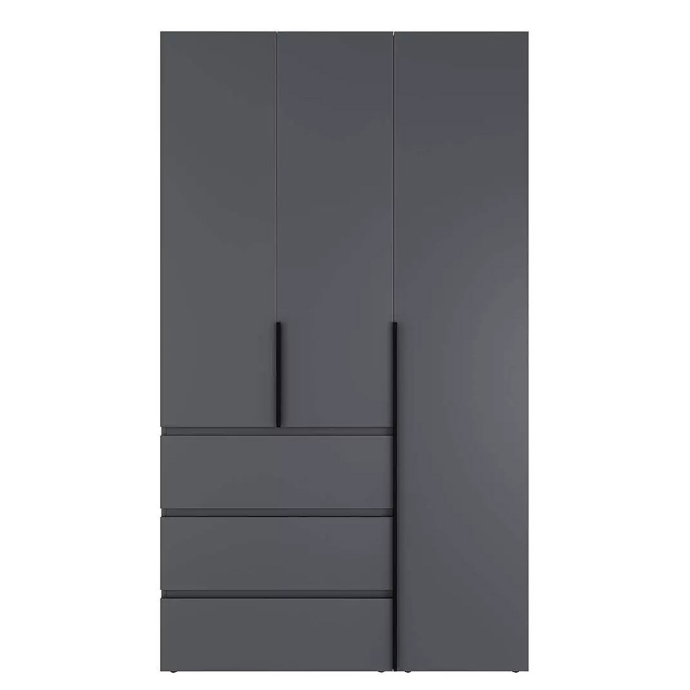 Комбинированная конструкция шкафа включает отделение для одежды со штангой, удобные полки для аксессуаров или белья и несколько ящиков для хранения мелких вещей. Такая функциональность позволяет поддерживать порядок и рационально использовать пространство.