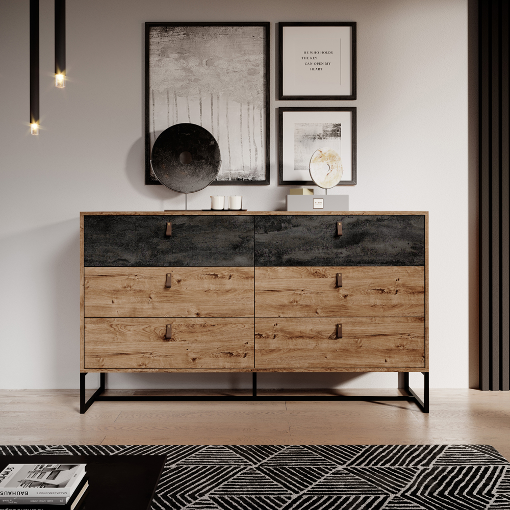 Комод Dark DKS154 – это практичное решение для хранения разнообразных предметов. С шестью выдвижными ящиками у вас появится достаточно места для организованного хранения большого количества разнообразных предметов. Поверхность комода идеально подходит для демонстрации ваших любимых сувениров, украшений или фотографий, добавляя персональный штрих в интерьер.