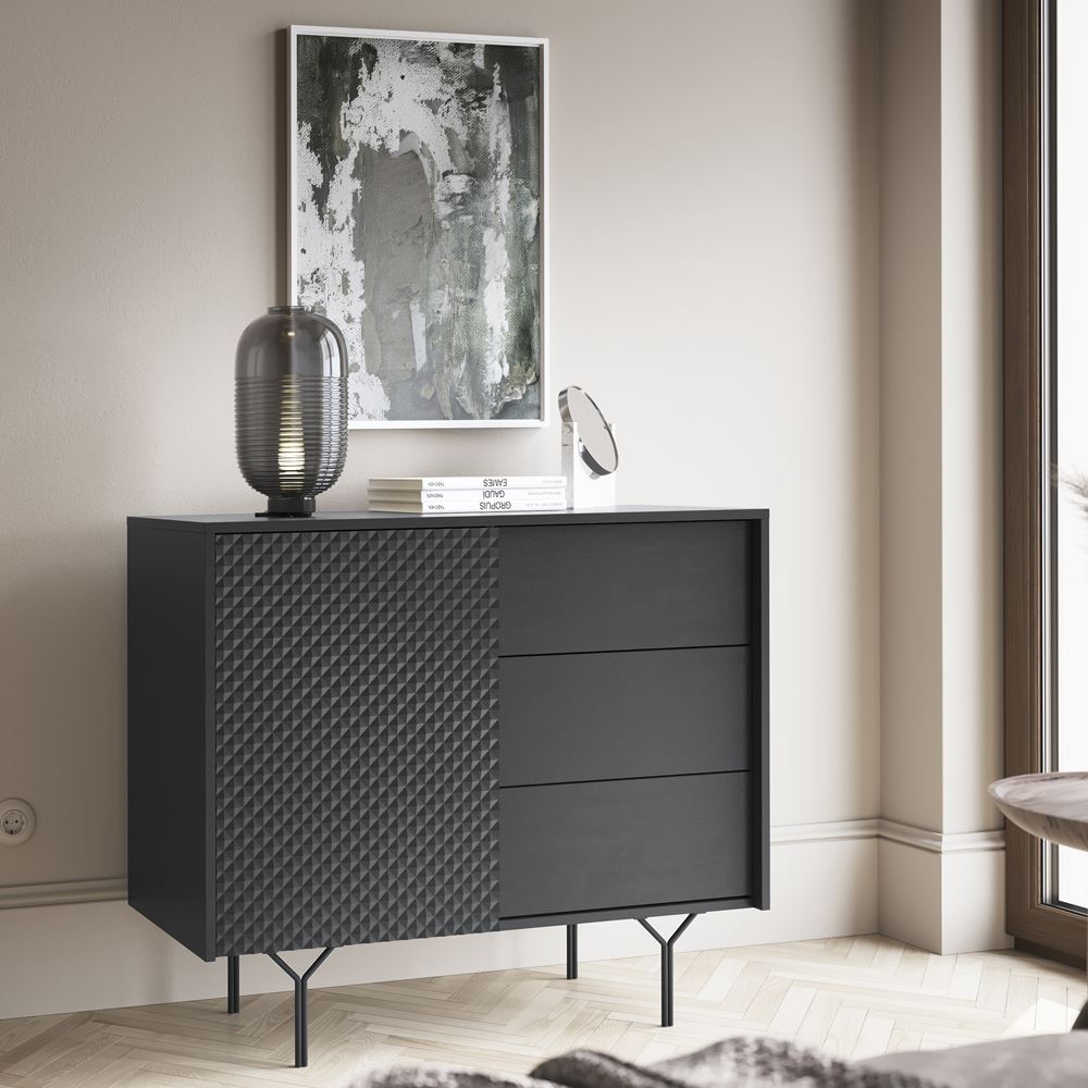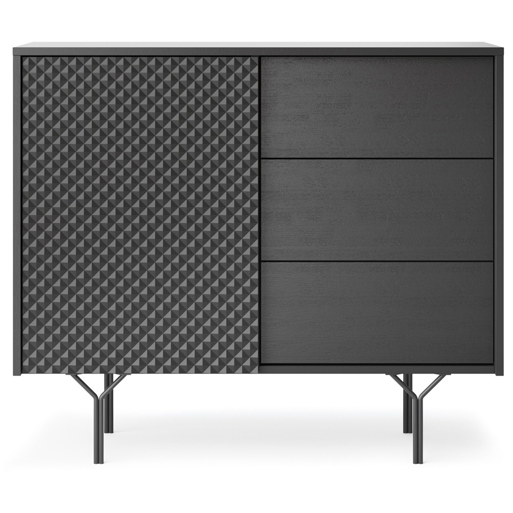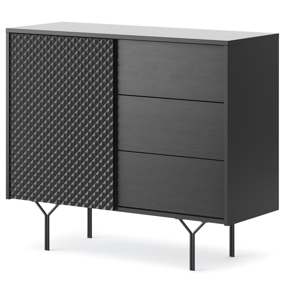 Хотим обратить Ваше внимание на то, что цены на мебель Вас приятно удивит и порадует. В каталоге Вы можете выбрать и купить кресло из экокожи, цена доступна каждому, а такую продукцию, как тумба и полки под телевизор мы сможем быстро доставить в Александрию, Одессу, Киев и по другим уголкам Украины.комод, Raven KSZ97, современный стиль, минимализм, 3D фасад, элегантные ножки, распашные дверки, ящики, стильный комод, мебель для спальни, мебель для гостиной, компактный, удобное хранение, дизайн интерьера, МДФ, ЛДСП, металл, черный цвет, высокие ножки, система push-to-open, Польша, мебель на ножках, функциональность, хранение вещей
