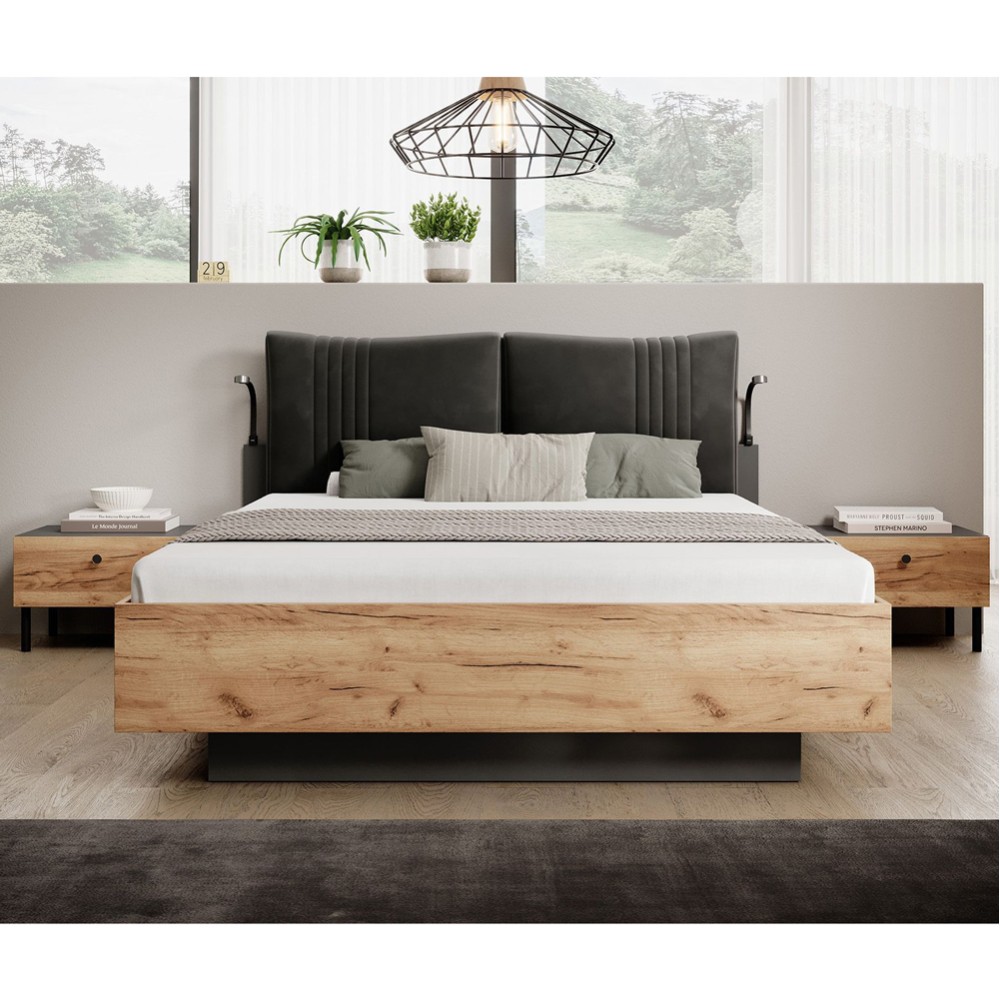 Кровать Eco 160 черный + дуб без ламелей под матрас без подсветки - 899566 подобрать и приобрести по нормальной стоимости в онлайн магазине feshmebel.com.ua со своевременной доставкой в любой уголок Киева. Напишите нашему продавцу и мы привезем в Чернигов, Бердянск, Никополь и другие города. Стулья офисные, Кресла, Обеденные комплекты или другой аналог уникальных товаров от производителя, удобно подобрать из огромного выбора товаров. Лучшее предложение, купить Кровать Eco 160 черный + дуб без ламелей под матрас без подсветки - 899566 на сайте Фешемебельный или по номеру 0-800-330-190.