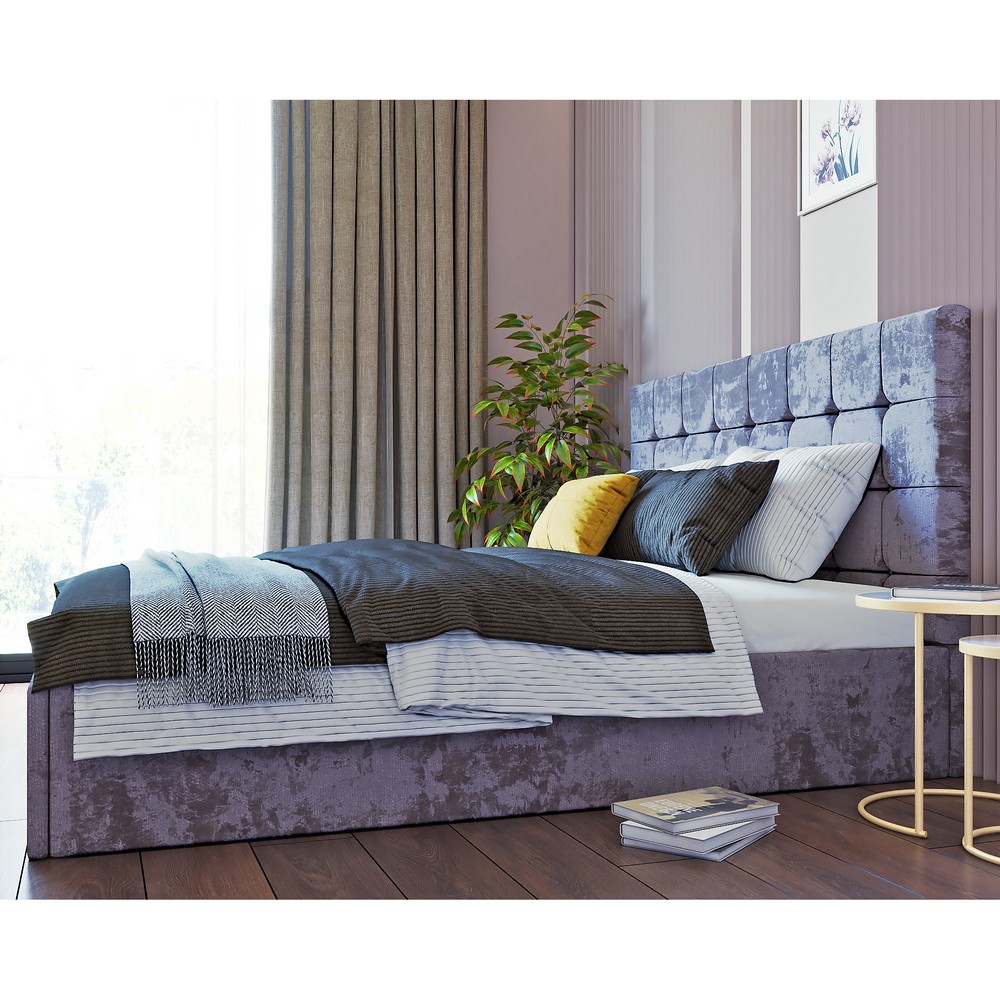 Размер спального места составляет 160х200 см, обеспечивая комфортный и уютный сон. Стильная спинка кровати украшена оригинальной стяжкой в форме квадратов, добавляя изысканности и уникальности дизайну.