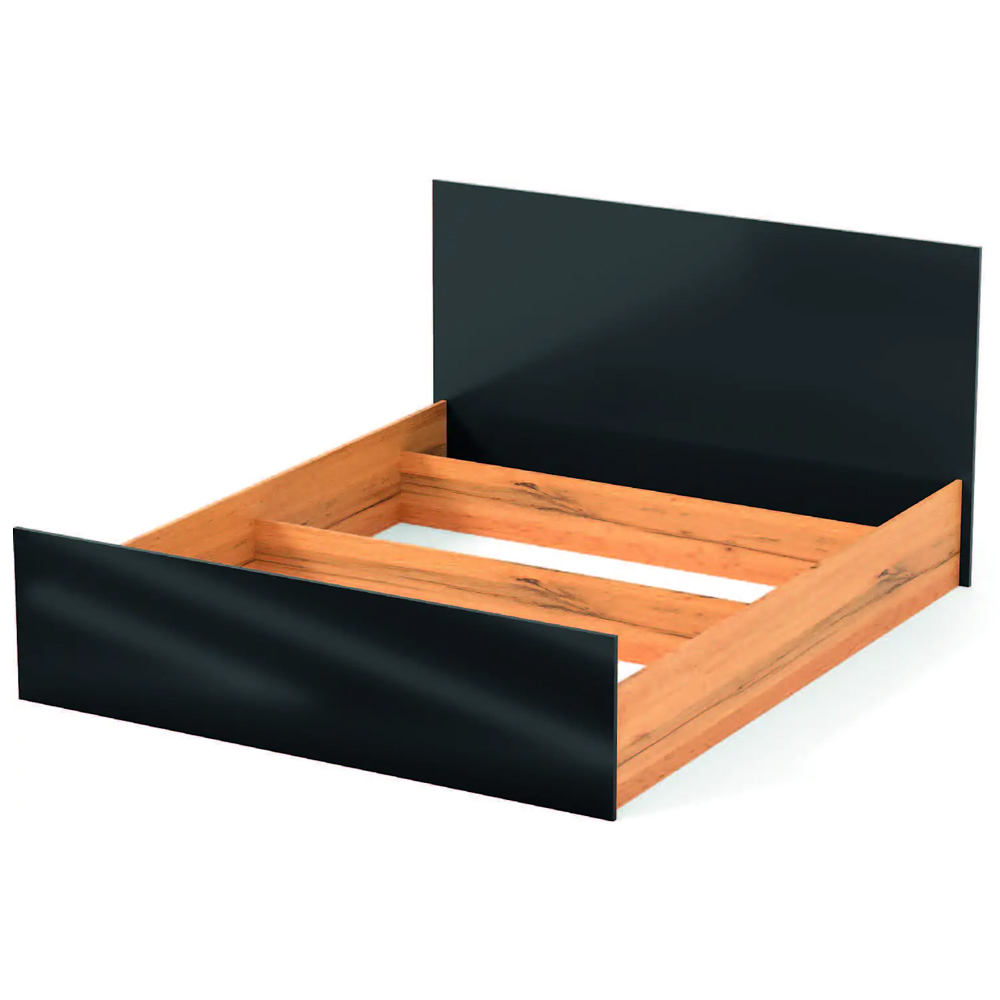 Корпус кровати изготовлен из прочного ДСП, а фасад - это МДФ с глянцевой пленкой.