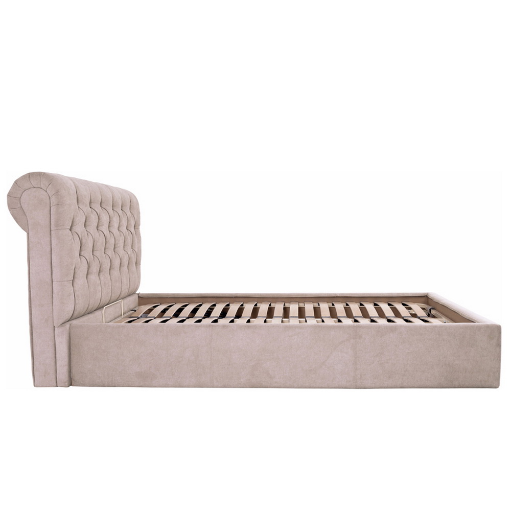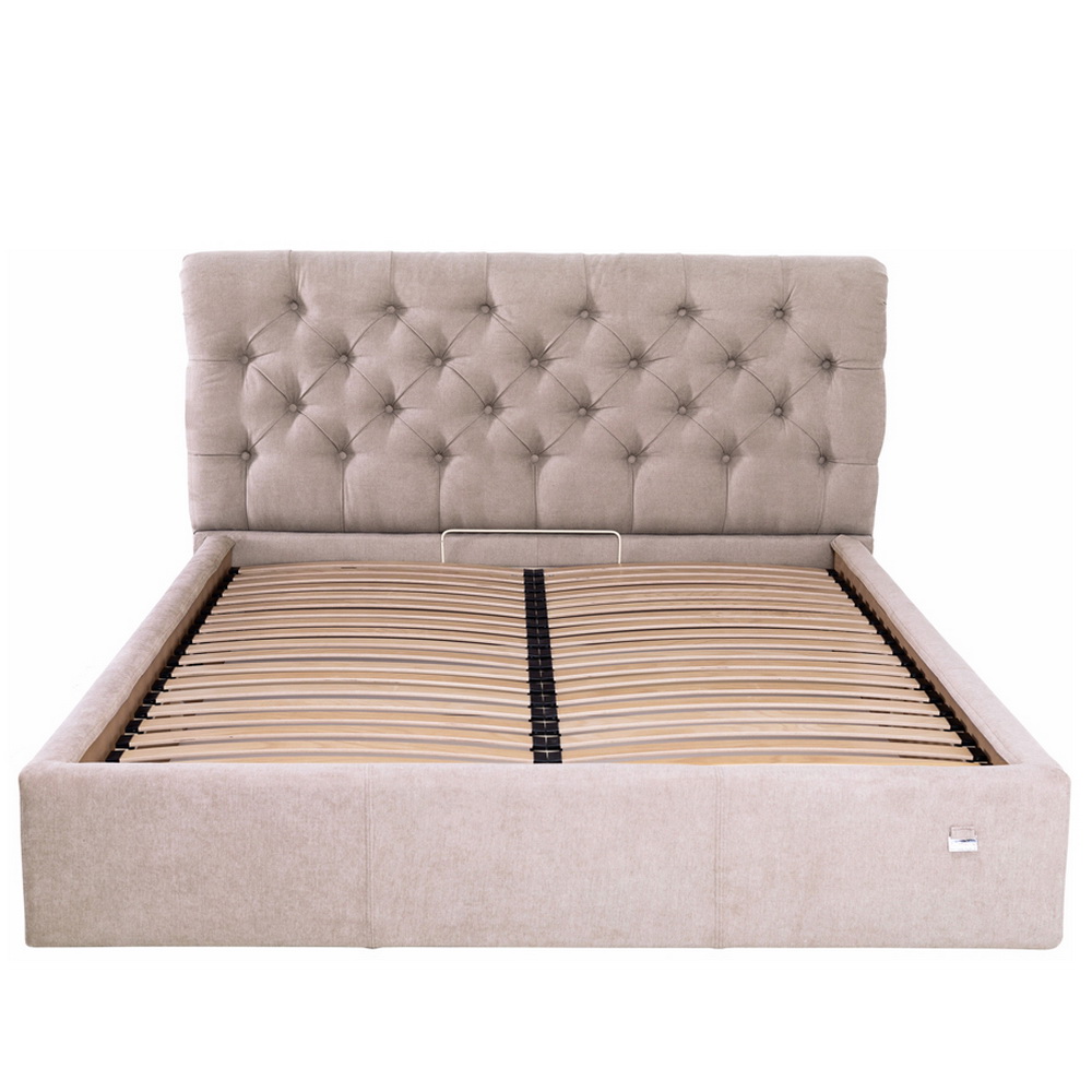 Яркий внешний вид и высокое качество сборки сделали двуспальную кровать Лондон одной из самых популярных моделей среди покупателей. Каркас модели создается из прочного дерева и ДСП-плиты, для ортопедических ламелей предусмотрена металлическая рама. Наполнителем изголовья является пенополиуретан, для обивки предусмотрена износоустойчивая ткань. Дополнительно изголовье декорировано стильной стяжкой и мебельными пуговицами.
