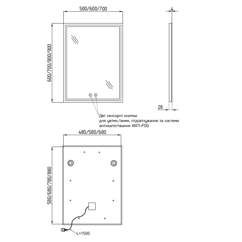 На поверхности зеркала расположена сенсорная кнопка, которая быстро реагирует на прикосновение и позволяет легко включать и выключать подсветку. Зеркало подключается к стандартной сети 220 В и комплектуется кабелем с вилкой, что упрощает установку.