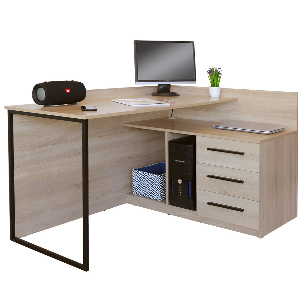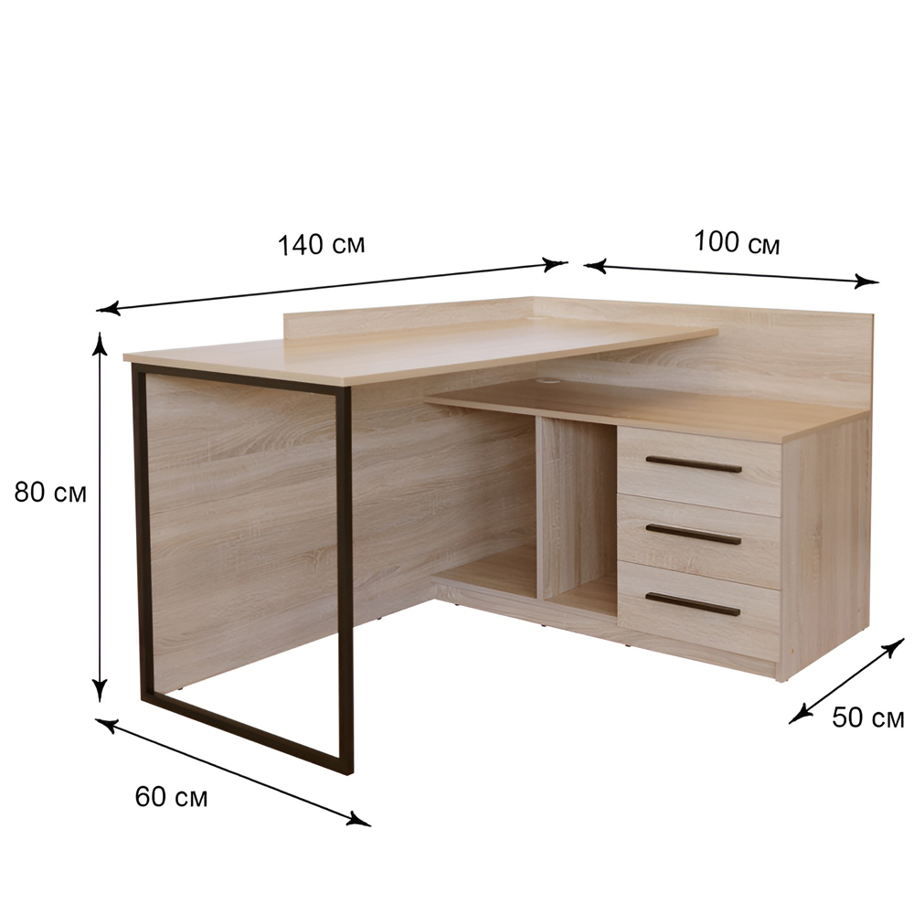 Стол Флеш - комбинация современного стиля и функциональности, которая является идеальным выбором для создания рабочей зоны. Большая рабочая поверхность обеспечивает достаточно места для размещения всех необходимых предметов и эффективного выполнения задач. Боковая тумба с открытой нишей предоставляет удобное место для размещения системного блока и другой техники, а три выдвижных ящика дополняют стол дополнительным пространством для организации хранения канцелярии и личных вещей. Сочетая в себе стильный дизайн и практичность, этот стол станет отличным дополнением к вашему рабочему или учебному пространству, создавая вдохновляющую обстановку для эффективной работы и творчества.