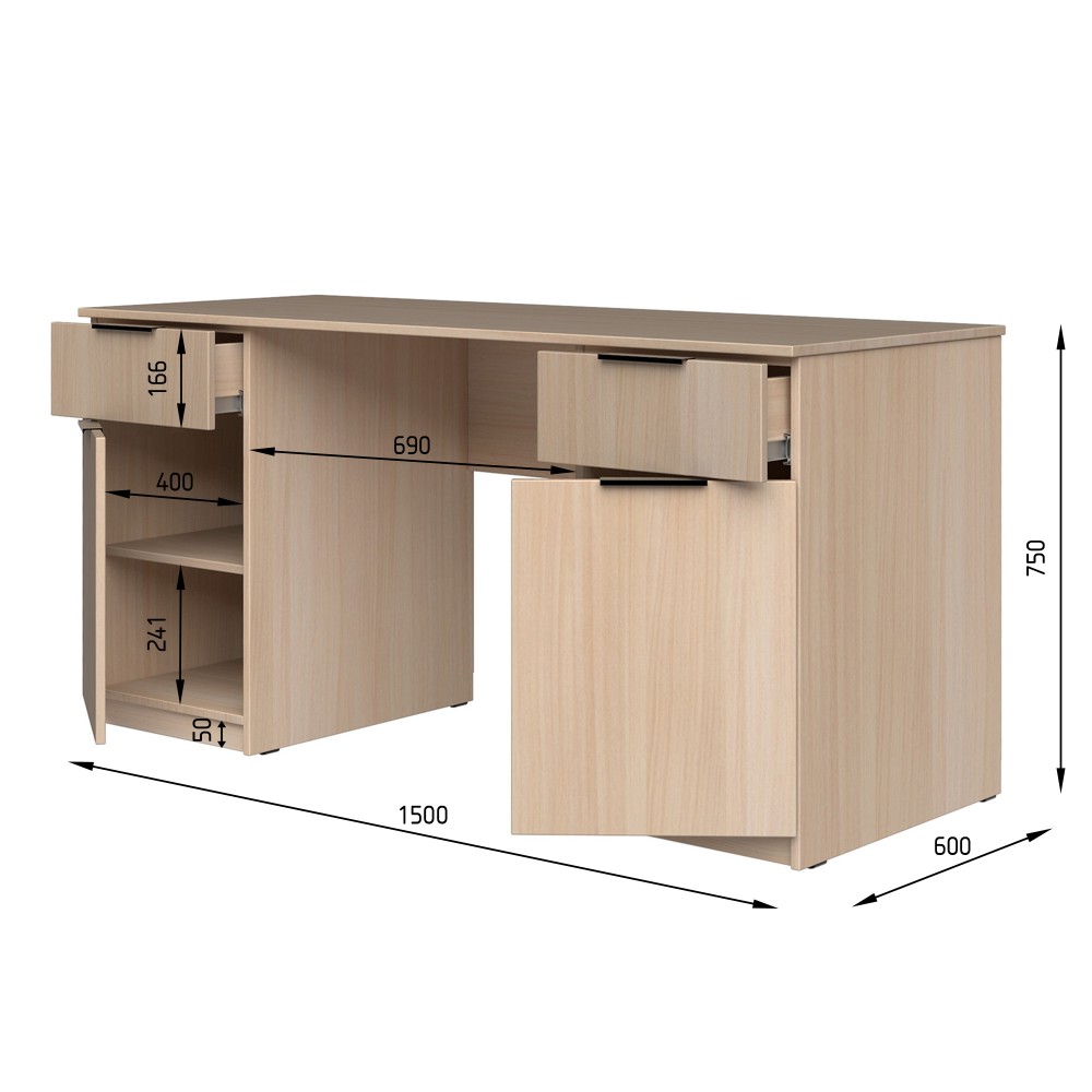 Продуманная конструкция делает стол удобным для учебы, работы за ноутбуком или компьютером. Достаточная рабочая поверхность позволяет комфортно разместить все необходимые предметы, а ящики и скрытые отделения за дверцами обеспечивают быстрый доступ к вещам, которые нужно хранить под рукой.