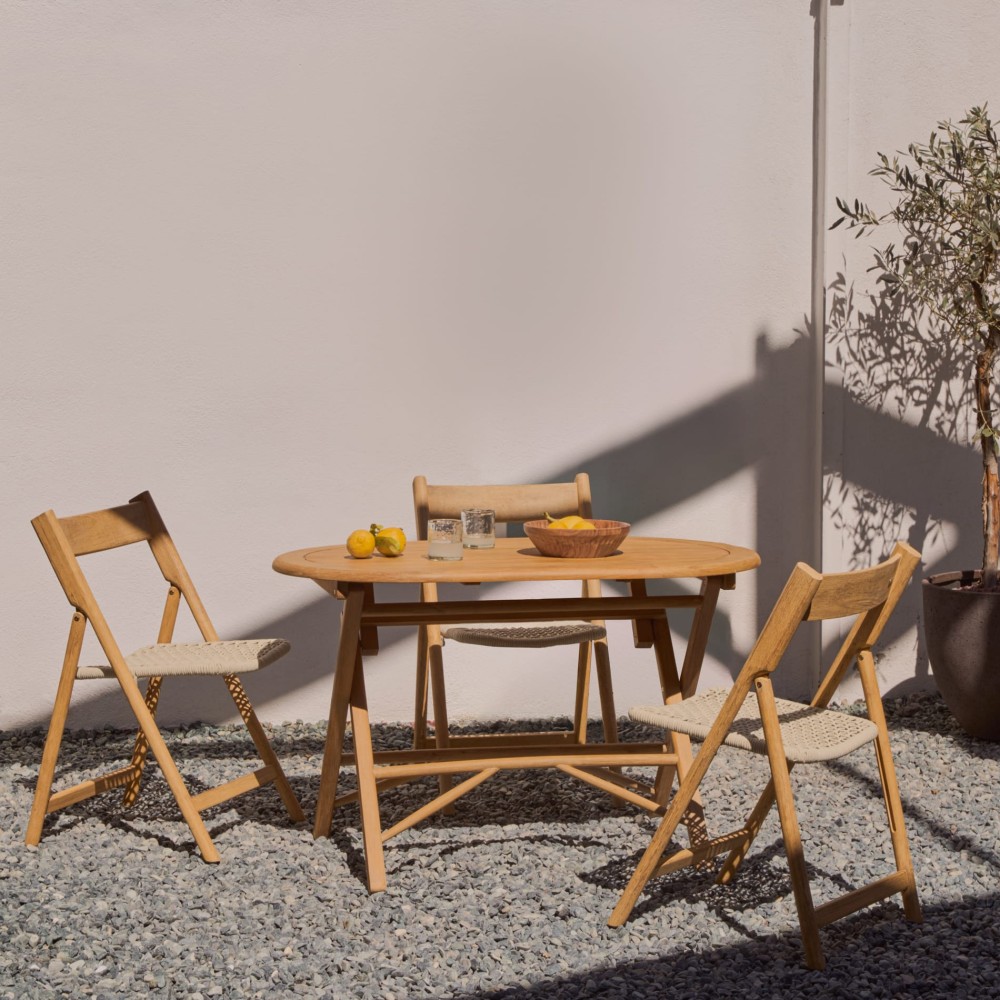 Складной стол Dandara — идеальное решение для небольших террас, балконов и уютных двориков. Благодаря складной конструкции его легко можно убрать и стол не будет занимать лишнее пространство. В разложенном виде стол Dandara вмещает до 4 человек, создавая комфортное место для завтрака на свежем воздухе или вечернего отдыха.