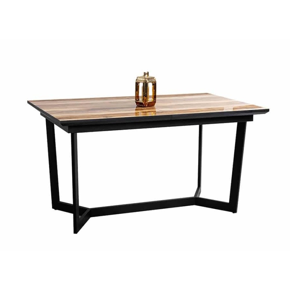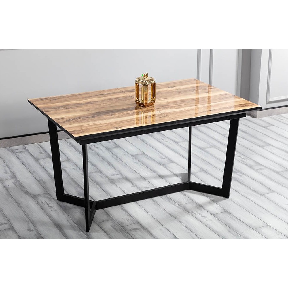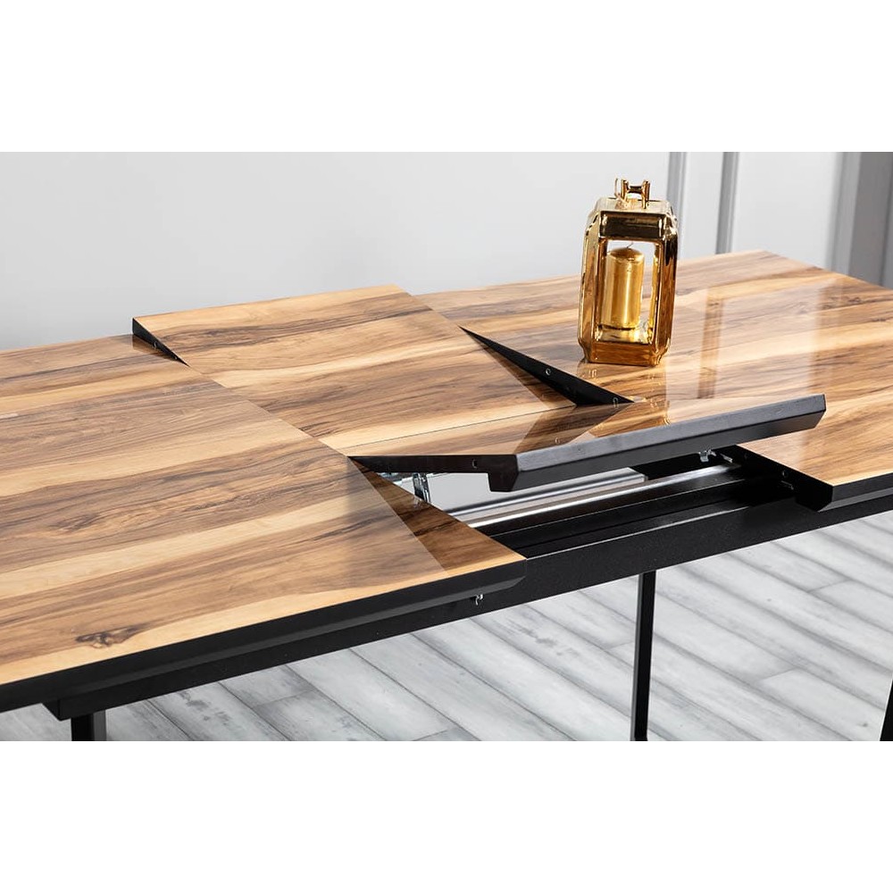 Элегантный обеденный стол Хилтон станет прекрасным украшением для современной кухни или гостиной, которые выполнены в стиле минимализм. Каркас стола производится из прочного металла, который окрашивается экологически чистой порошковой краской черного цвета. Столешница создается из МДФ ламинированного HPL покрытием, которое устойчиво к механическим повреждением и не потеряет свой первоначальный внешний вид даже через несколько лет. При необходимости длина стола может быть увлечена еще на 40 см, благодаря небольшой вставке, которая размещается посередине.