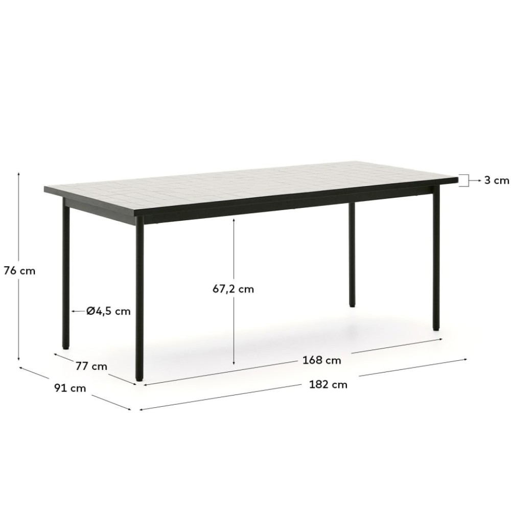 Стол Maurina 182х91 см — это ода средиземноморской культуре, переосмысленная в современном ключе. Столешница из геометрической мозаики, выполненной вручную из керамической плитки, отражает уважение к традиционному ремеслу и придаёт изделию особую теплоту и выразительность.