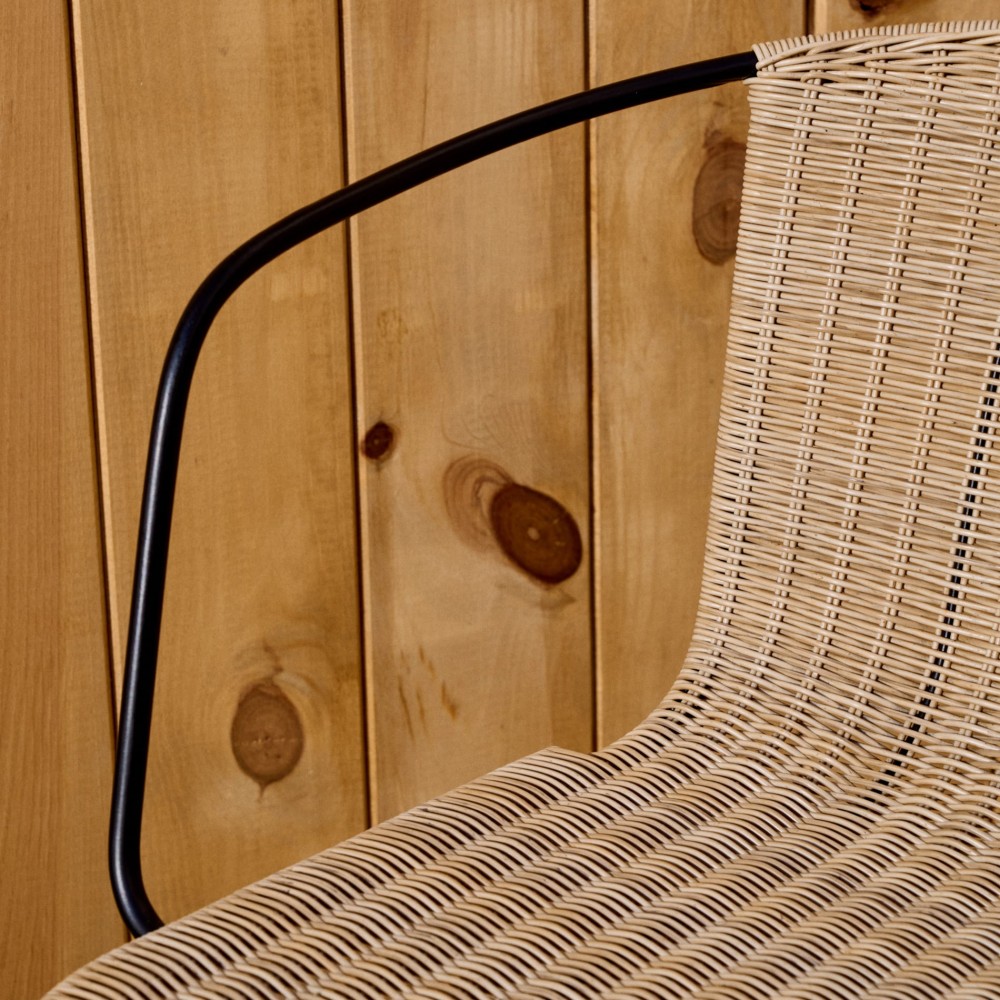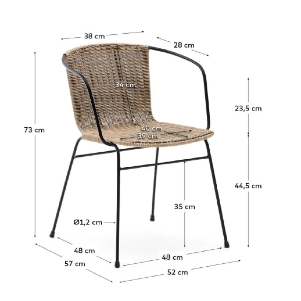 Стул Eltiera с подлокотниками гармонично сочетает в себе деревенскую эстетику и современную функциональность. Выполненное из ручного плетения синтетического ротанга и установленное на прочный каркас из черной стали, этот стул станет выразительным акцентом как в интерьере, так и в уличной зоне отдыха.