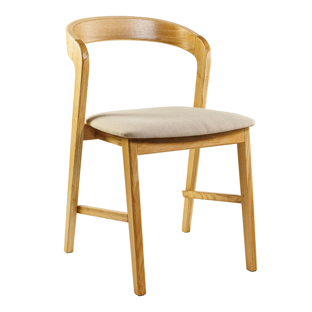 Каркас стула изготовлен из массива дерева дуб. Это прочный и надежный материал, который делает модель устойчивой к нагрузкам и механическим повреждениям. Выгодным дополнением становится сиденье, обшитое мягкой и приятной на ощупь тканью.