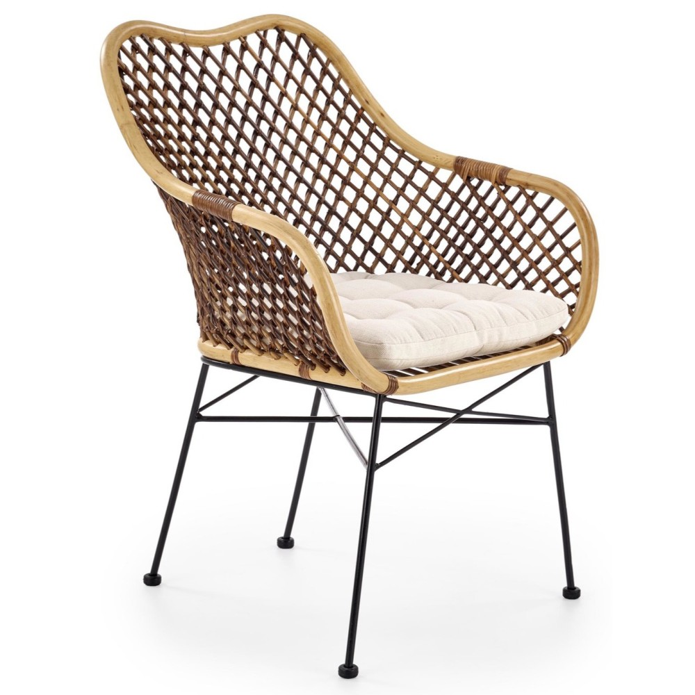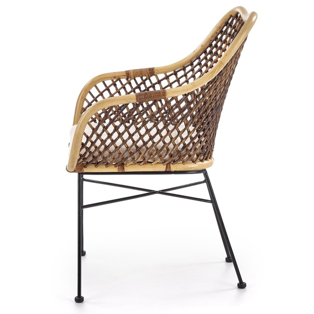 Стул K336 — это гармоничное сочетание натуральных материалов, изысканных деталей и удобства. Его дизайн сразу привлекает внимание благодаря контрасту тёплого ротанга и строгих черных ножек.