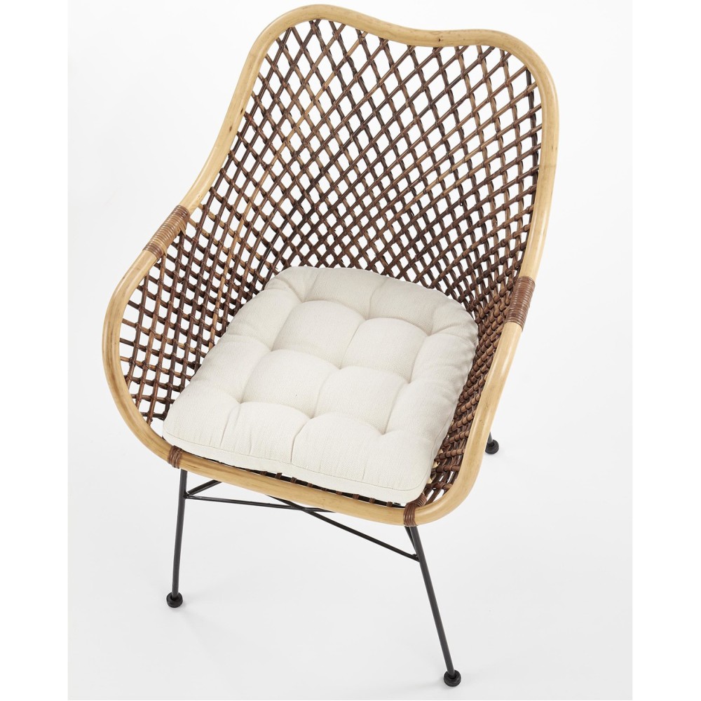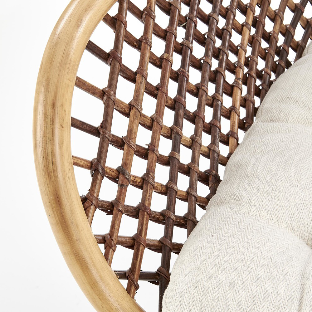 В комплекте идёт кремовая подушка, которая делает посадку ещё мягче и уютнее. Такой аксессуар легко вписывается в любую палитру интерьера и подчёркивает природную эстетику кресла.
