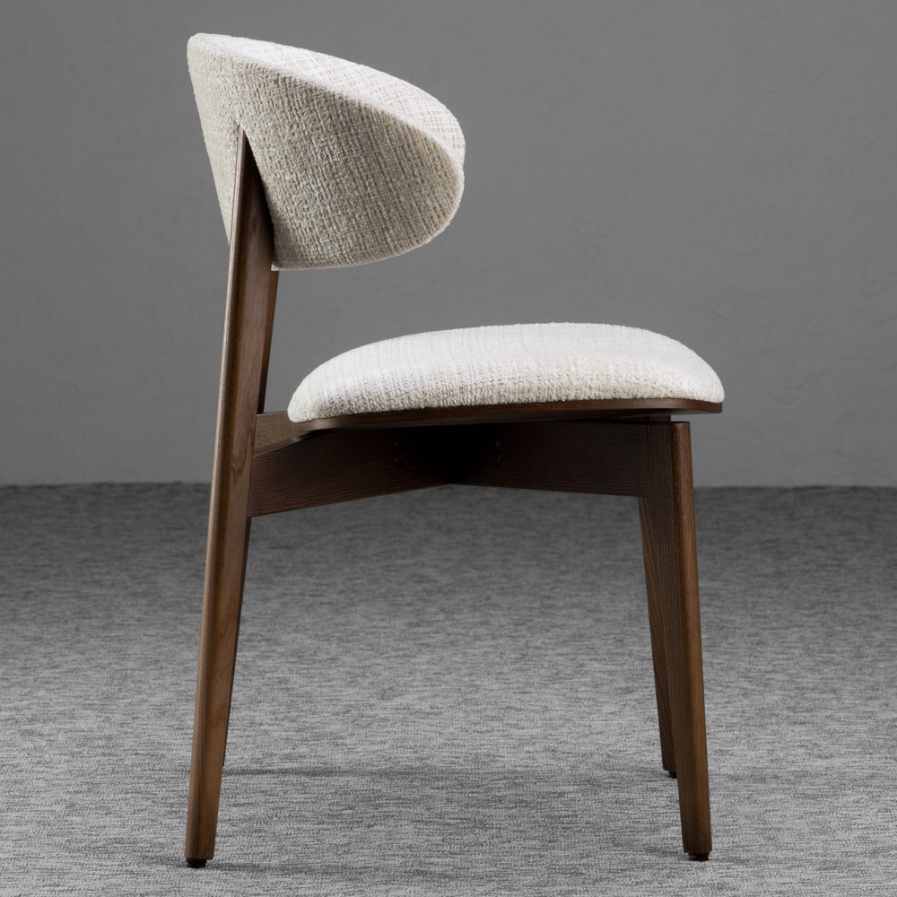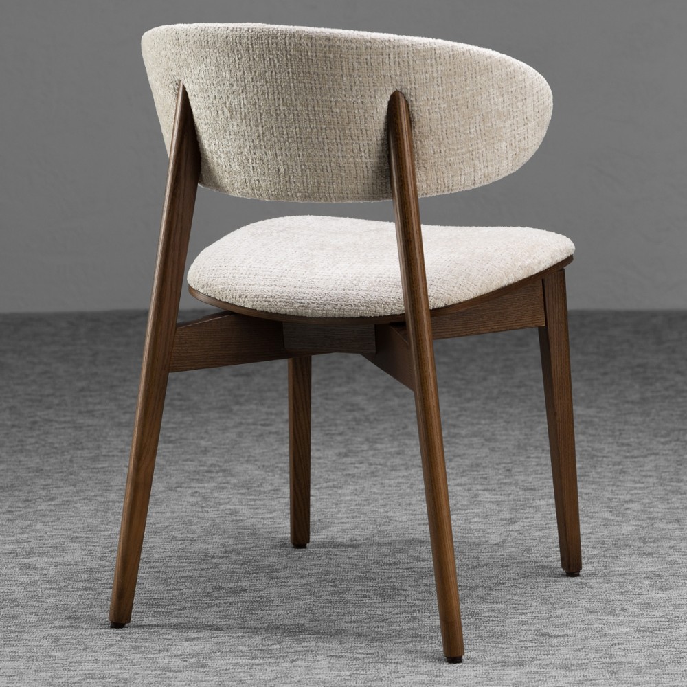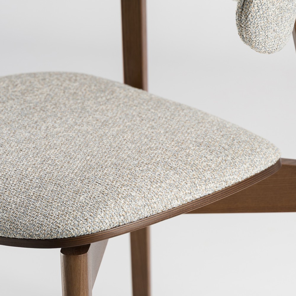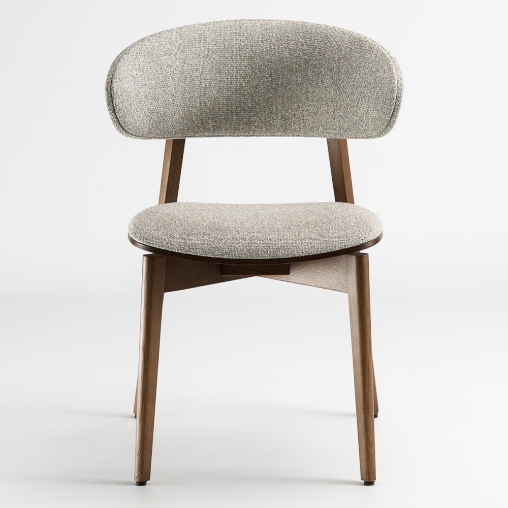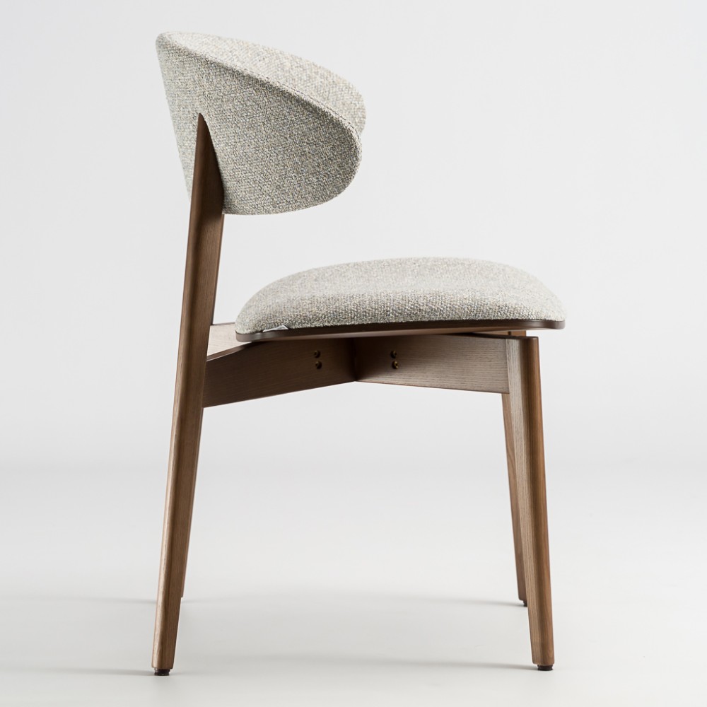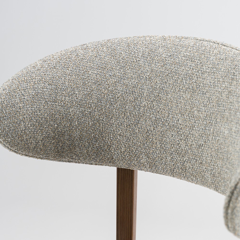 Задняя часть спинки покрыта тканью, что делает стул более элегантным и приятным на ощупь. Возможность сочетания двух разных видов ткани позволяет создавать эффектные акцентные решения — особенно актуально для современных кухонь и заведений HoReCa.