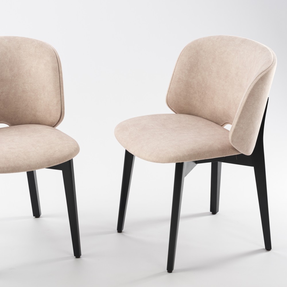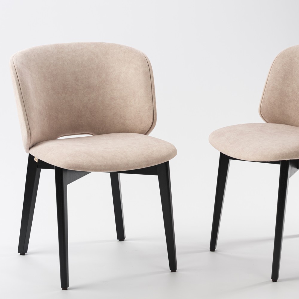 Стул Motti soft - это вариант, где задняя часть спинки дополнительно обита тканью. Это открывает возможность сочетать два вида тканей, добавляя акцент, текстурный контраст или цветовую игру. Такой вариант особенно эффектно смотрится в интерьерах, ориентированных на детали.